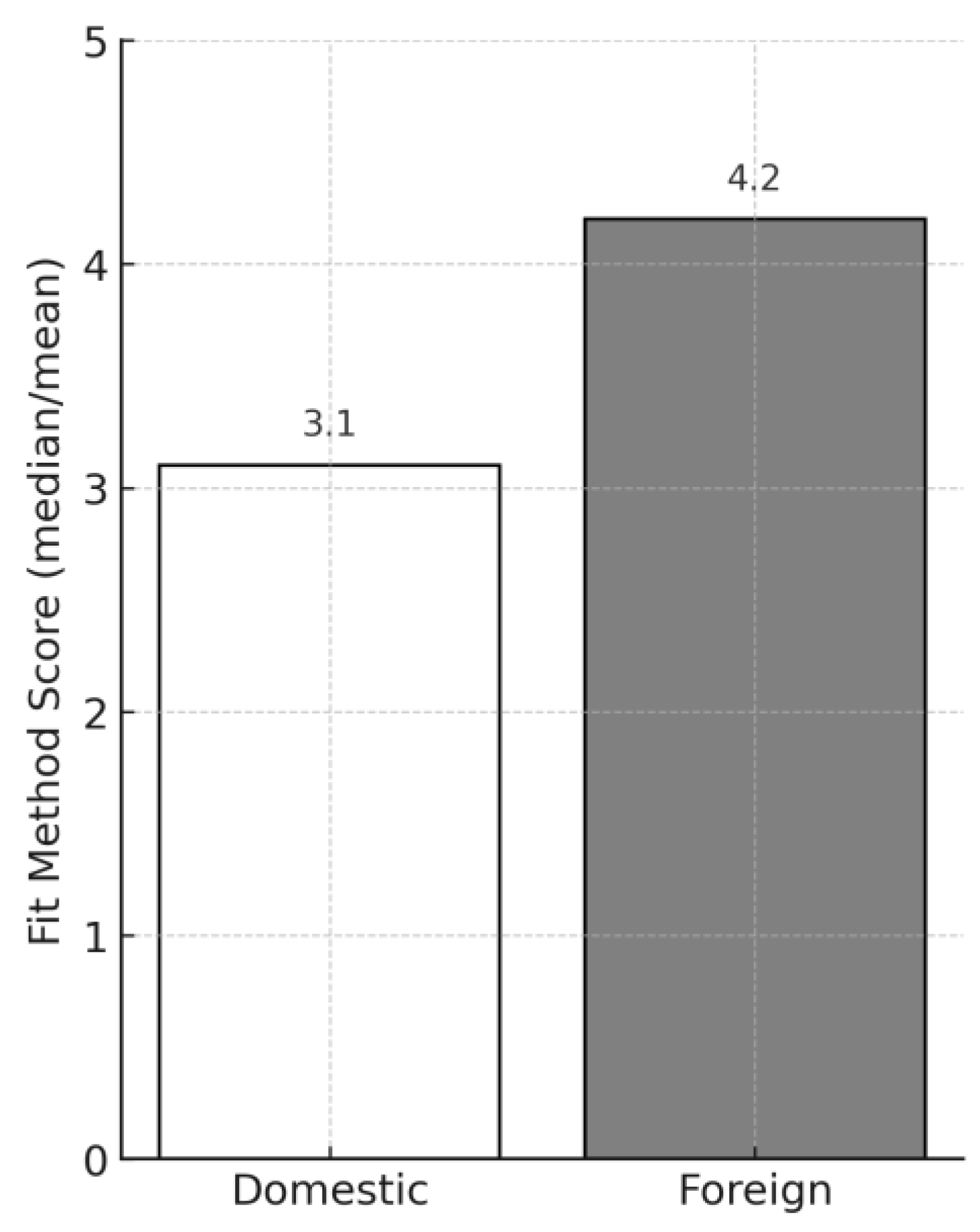 H1b | Ownership (foreign vs. domestic) | Fit Method Score | Mann–Whitney U | |