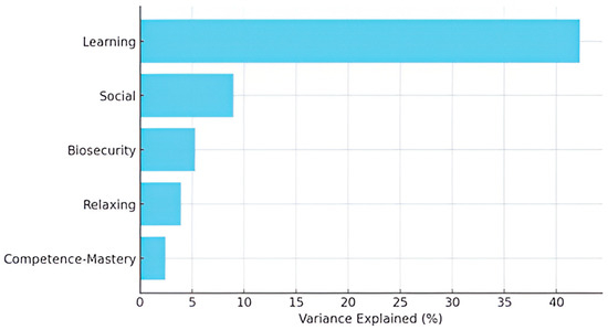 Finally, the “Competence-Mastery” factor, responsible for 2.43% of the variance, describes an orientation toward achieving and improving skills. It implies the need to demonstrate physical fitness and abilities, as well as the drive to develop them and remain active, highlighting the self-efficacy component inherent in certain adventure practices. The details of these dimensions and their relative contribution to the total variance are presented in Table 1 and Figure 2.