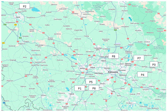 Location of sampling sites (base map from http://mapa-google.pl/polska) (accessed on 12 September 2025). Source: Authors’ own elaboration.
