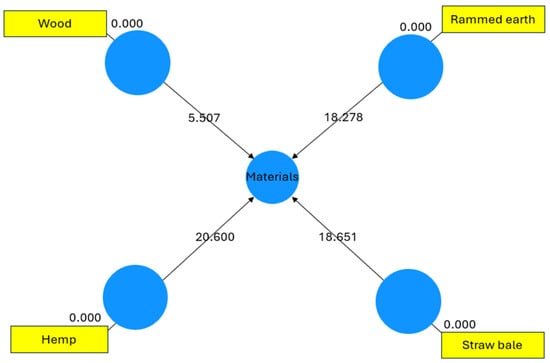 In a bid to clarify the key factors and their impact on the acceptance of zero-carbon building material components, SEM methods were employed. As a two-step process, SEM enables the measurement of relationships between a set of independent variables—key factors influencing materials selection choice and a dependent variable—the perception of zero-carbon building materials [56]: