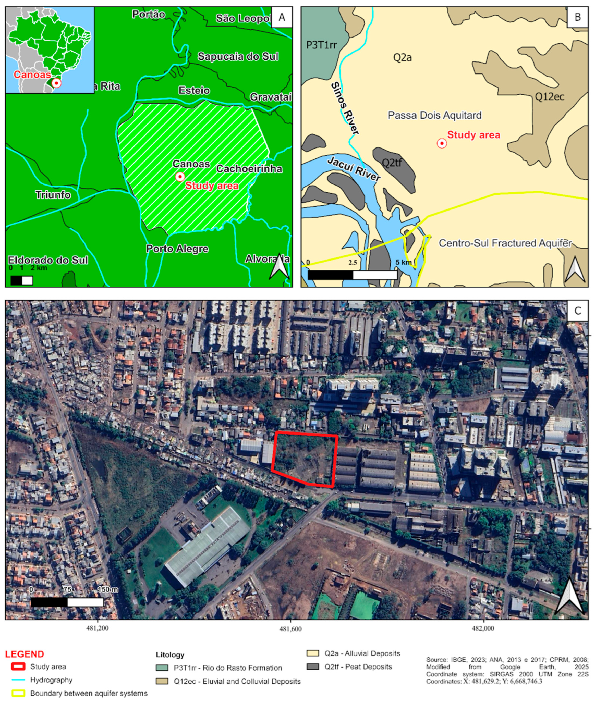 - Lamberty, D.; Franzen, M. Geological Risk Mapping: Canoas, RS. SGB-CPRM; 2025. Available online: https://rigeo.sgb.gov.br/handle/doc/25501?locale=en (accessed on 10 April 2025). (In Portuguese)