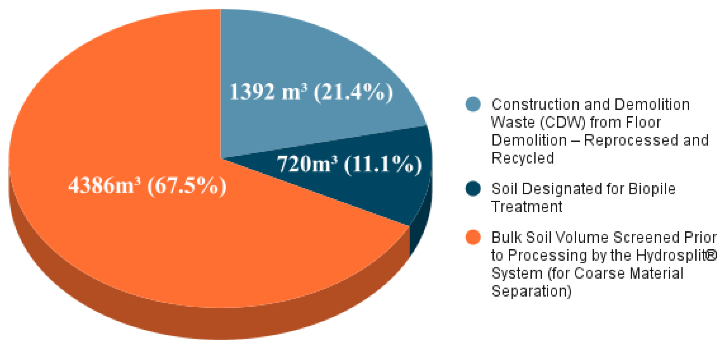 - Material recovery: 93.4% of the soil was reused as granular material for backfilling.