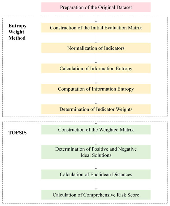 Procedure for calculating risk scores using the entropy-weighted TOPSIS method.