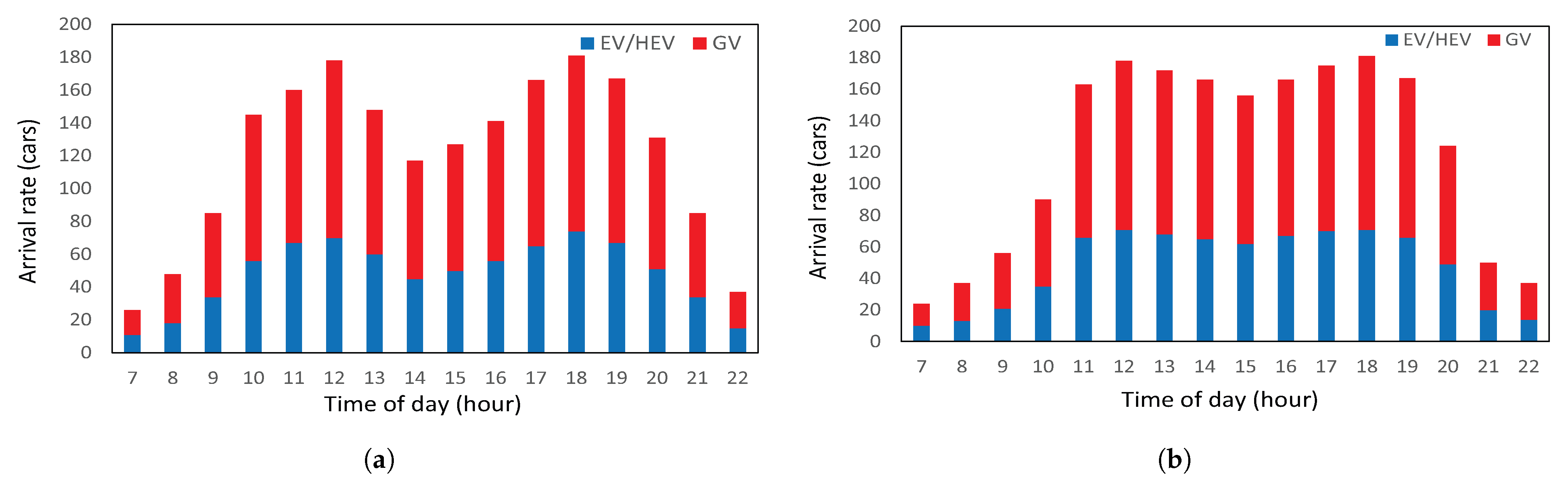 3.2. Demand (Arrival) Pattern Characteristics in Simulation