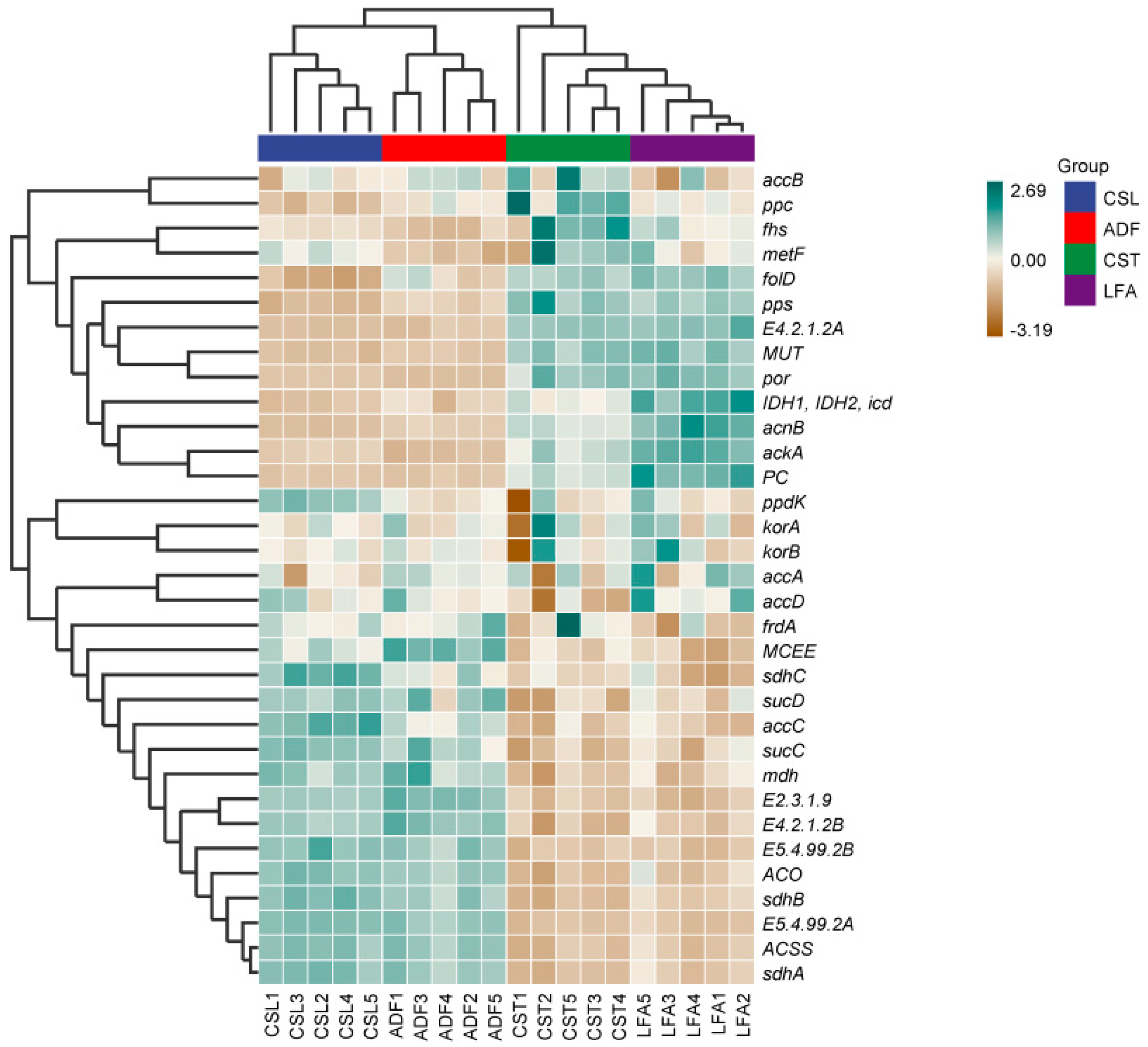 Figure 10. Differences in genes related to carbon fixation function in different disturbed areas of CG dump.