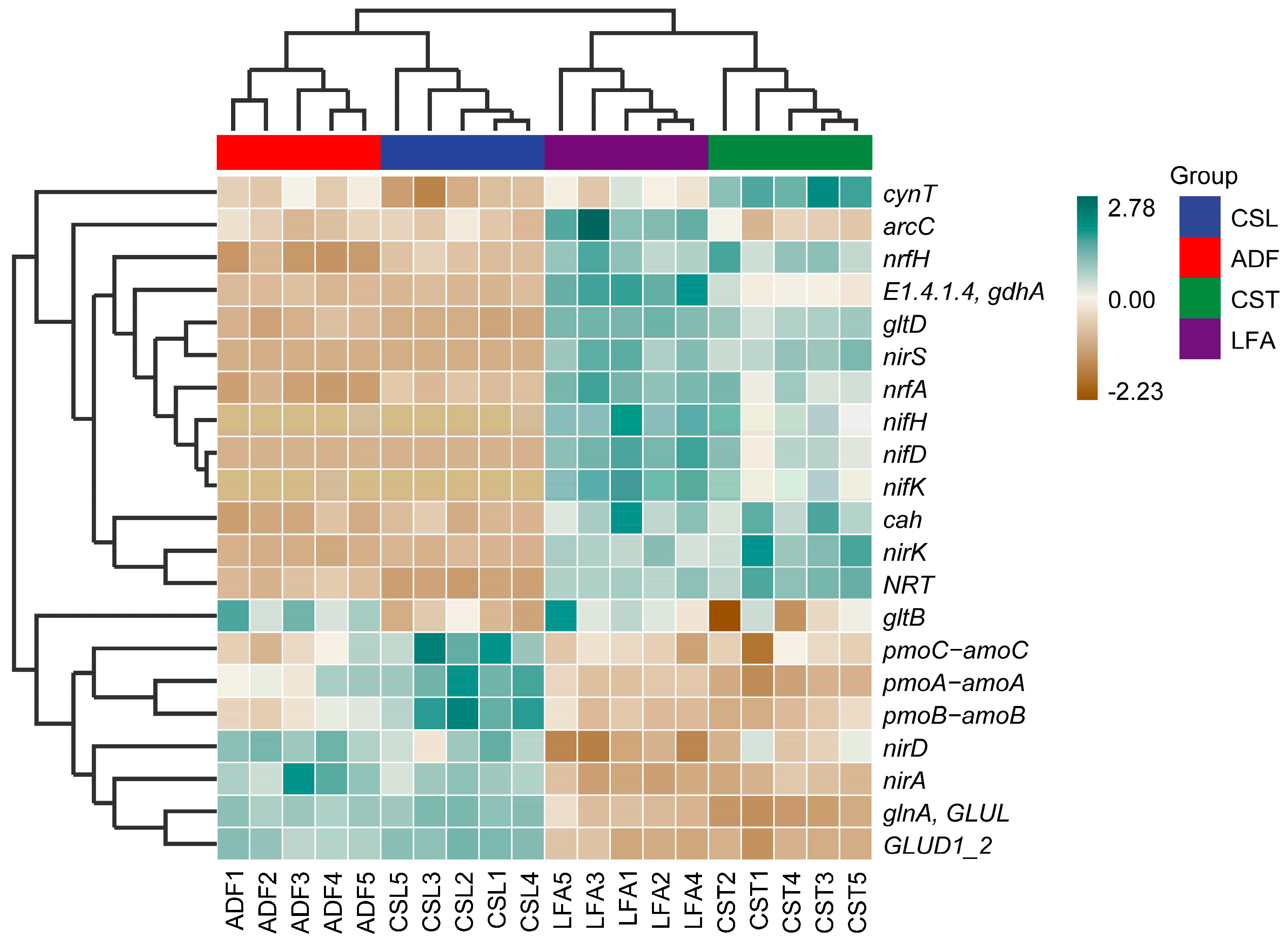 Figure 12. Differences in genes related to nitrogen metabolism function in different disturbed areas of CG dump.