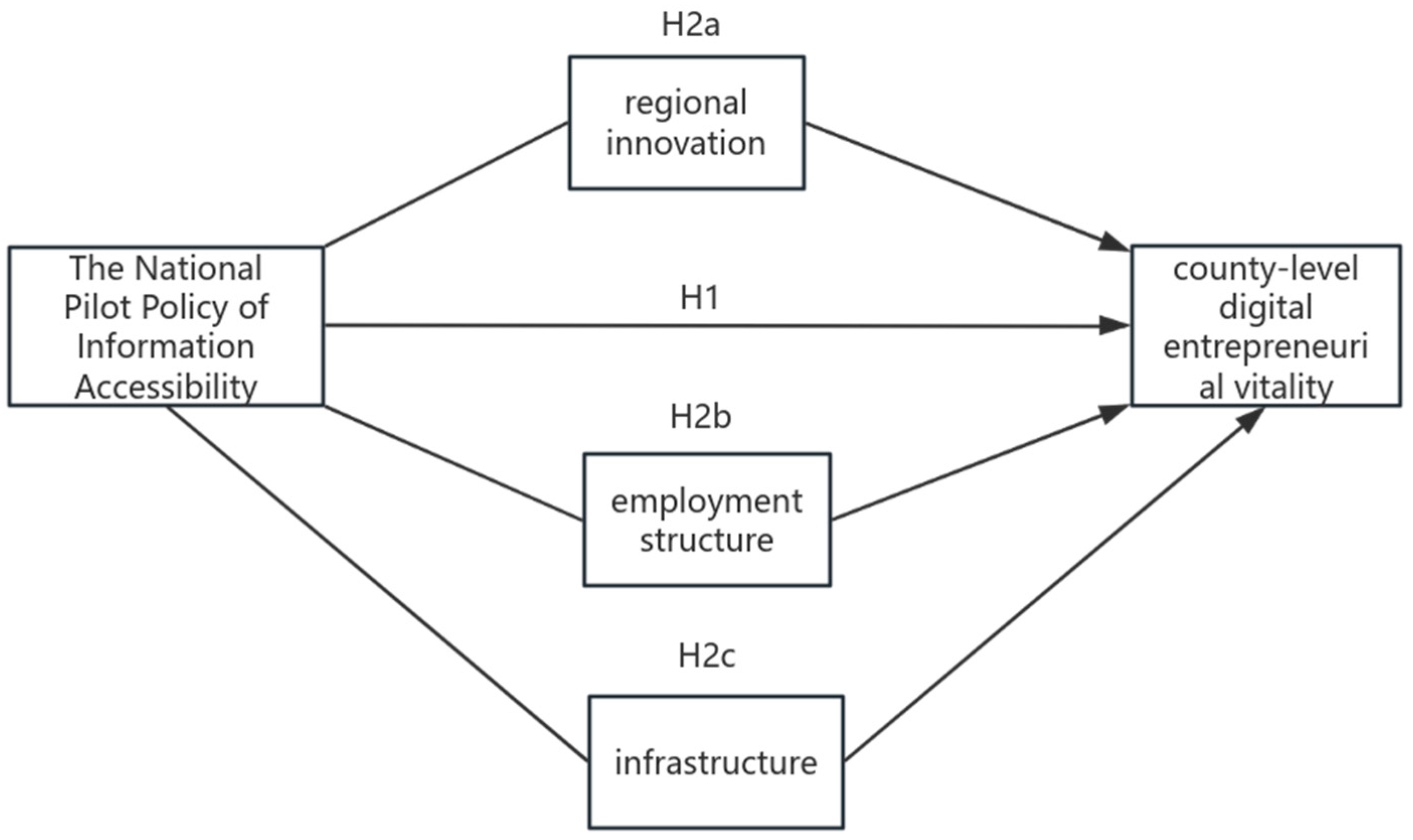 3]. By enhancing digital infrastructure, streamlining entrepreneurial procedures, and optimizing the policy environment, the government has significantly facilitated the rapid growth of digital entrepreneurship. Notably, at the county level, digital government has not only improved the entrepreneurial ecosystem but also supported the initiation and growth of numerous digital ventures through incentive mechanisms. China’s “National Pilot Policy of Information Accessibility”, launched in 2014, provides a valuable quasi-natural experiment for identifying how the digital transformation of government governance influences county-level digital entrepreneurial vitality.