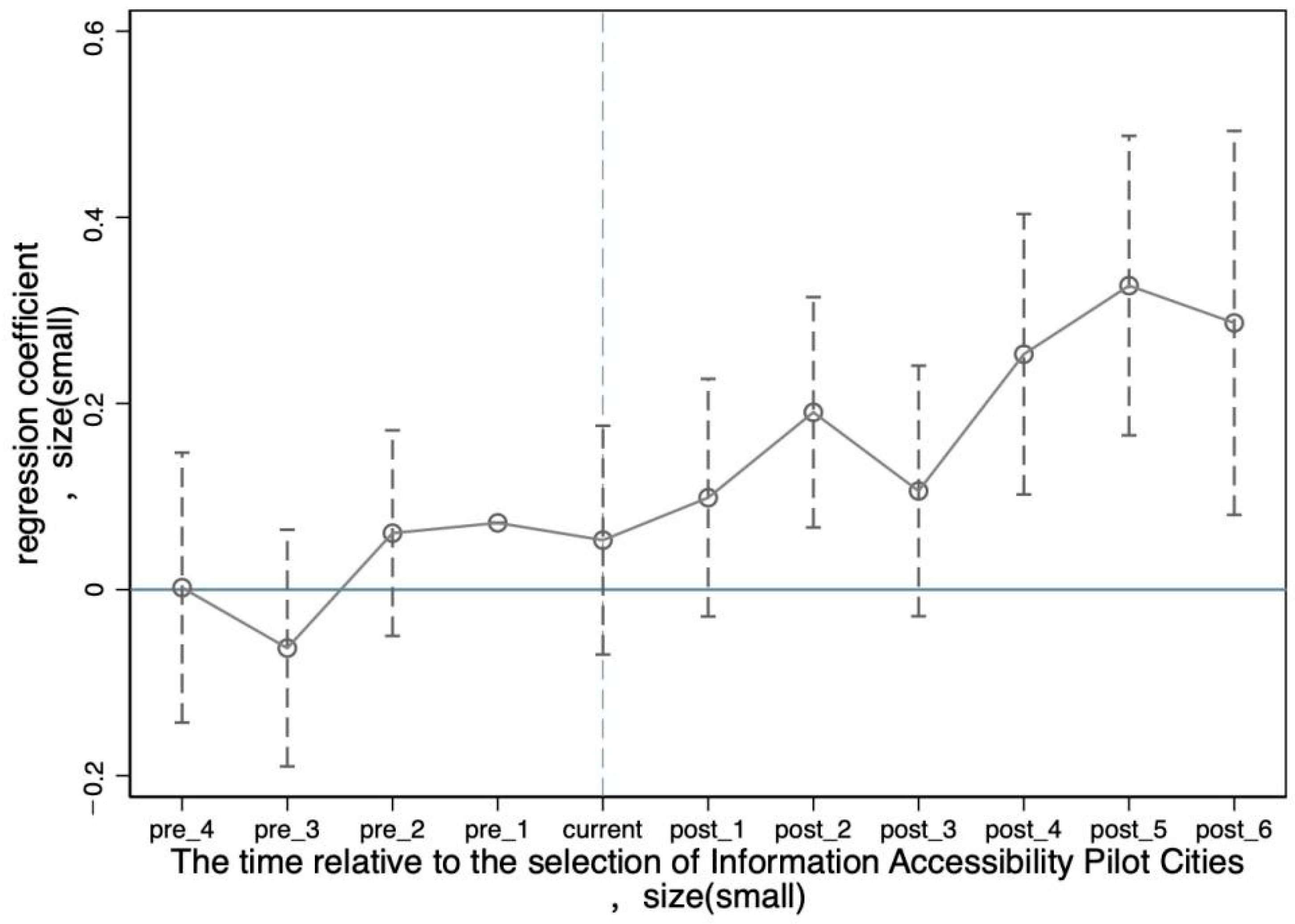 It is important to note that the heterogeneity analysis reveals a significant positive effect of the Information Benefits to the People policy on county-level digital entrepreneurial vitality in western regions, whereas no statistically significant effect is observed in the eastern and central regions. This result requires a nuanced interpretation that considers both statistical power and regional characteristics. First, the “non-significant” findings in the eastern and central regions should not be directly interpreted as evidence of policy ineffectiveness. Further examination of sample sizes and residual variance reveals that the eastern region, affected by a limited number of pilot cases, has a relatively small sample size, resulting in larger estimation variance and potentially insufficient statistical power. Similarly, while the central region has a more adequate sample, the relatively high baseline level of infrastructure may limit the marginal improvement space, causing the policy effect to appear weaker and not statistically significant at conventional levels. Therefore, the non-significance in these regions should be understood as “effect uncertainty” rather than “absence of effect.” Second, the significant finding in the western region suggests that the policy exerts stronger marginal incentive effects in less-developed areas. Digital infrastructure investment, policy support, and factor integration generate greater institutional leverage in these regions, reflecting differentiated policy impacts. In summary, we recommend interpreting the non-significant results in the eastern and central regions as outcomes of limited statistical power and structural regional differences, rather than as indications of policy ineffectiveness, to avoid misjudging the heterogeneity of policy effects.