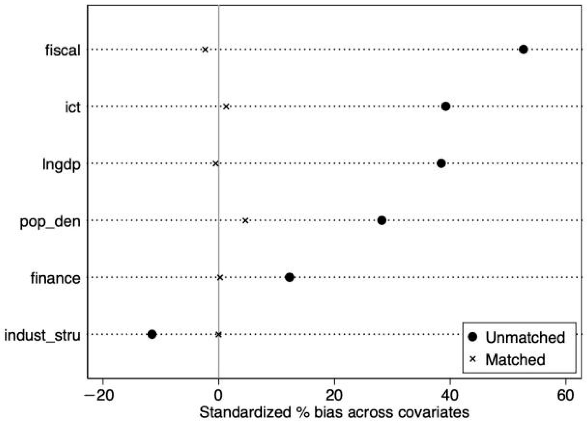It is worth noting that the Information Benefits to the People policy adopted a fiscal mechanism of “initial allocation combined with subsequent rewards and penalties”, which reinforced performance orientation and resource-based incentives in policy design. However, this mechanism may have introduced selective effects on both the selection of pilot cities and the intensity of policy implementation. On one hand, regions with stronger fiscal execution capacity, data management infrastructure, and institutional responsiveness were more likely to be included in the initial pilot list. On the other hand, counties with greater initial capacity may have been more motivated to allocate additional resources to enhance policy implementation due to the incentive structure. As a result, the observed policy effects may partially reflect a combination of “policy intervention effects” and “self-selection effects”. Although current data limitations prevent us from fully disentangling these mechanisms, we have controlled for key baseline characteristics in the main models and employed propensity score matching to mitigate potential sample selection bias. Future research could further develop a more comprehensive identification strategy to uncover how fiscal incentive structures shape the endogenous pathways of policy implementation.