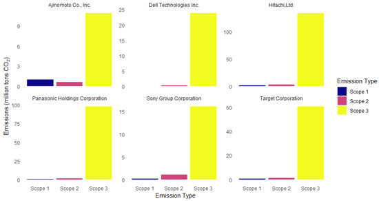 GHG emissions voluntarily disclosed by companies in the US and Japan (top 6 by average emissions) [3].
