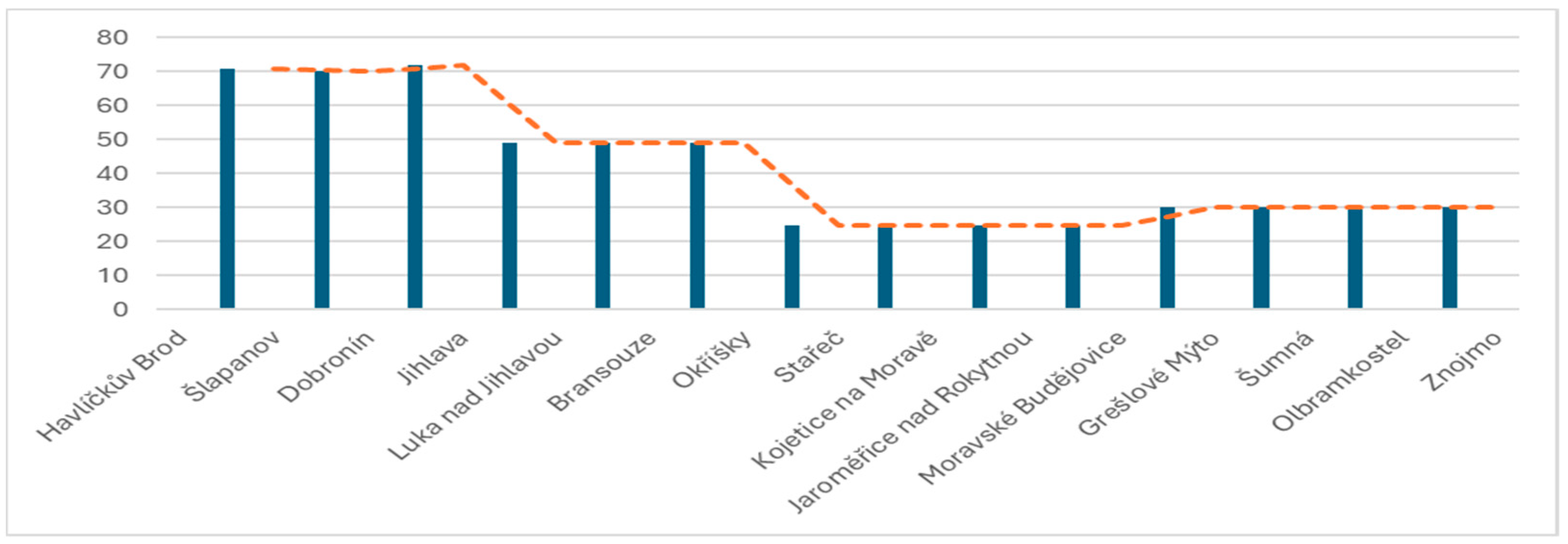 Jihava–Okříšky | 16 | 14.55 | 110% | 16,5 | 55% | 53% | 8 |