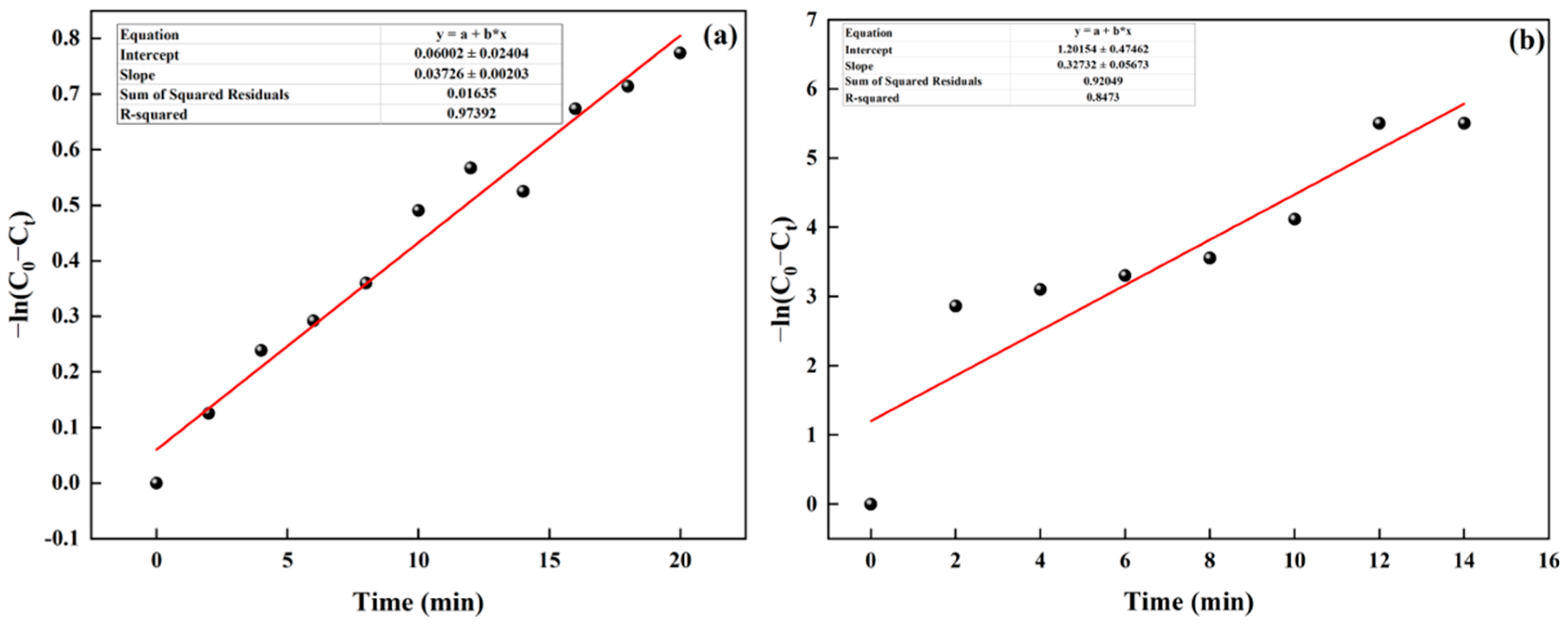3.3.1. Ozone Catalytic Decomposition Kinetics