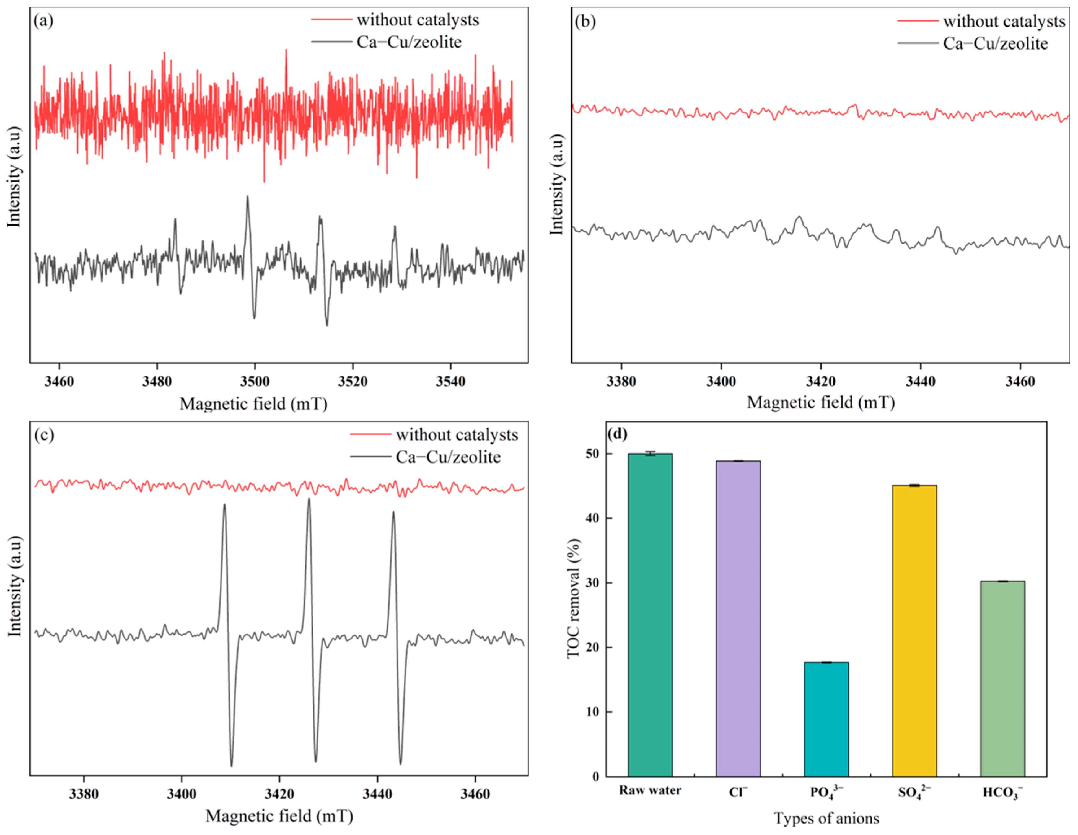 - Ikhlaq, A.; Brown, D.R.; Kasprzyk-Hordern, B. Mechanisms of catalytic ozonation on alumina and zeolites in water: Formation of hydroxyl radicals. Appl. Catal. B-Environ. 2012, 123, 94–106. [Google Scholar] [CrossRef]