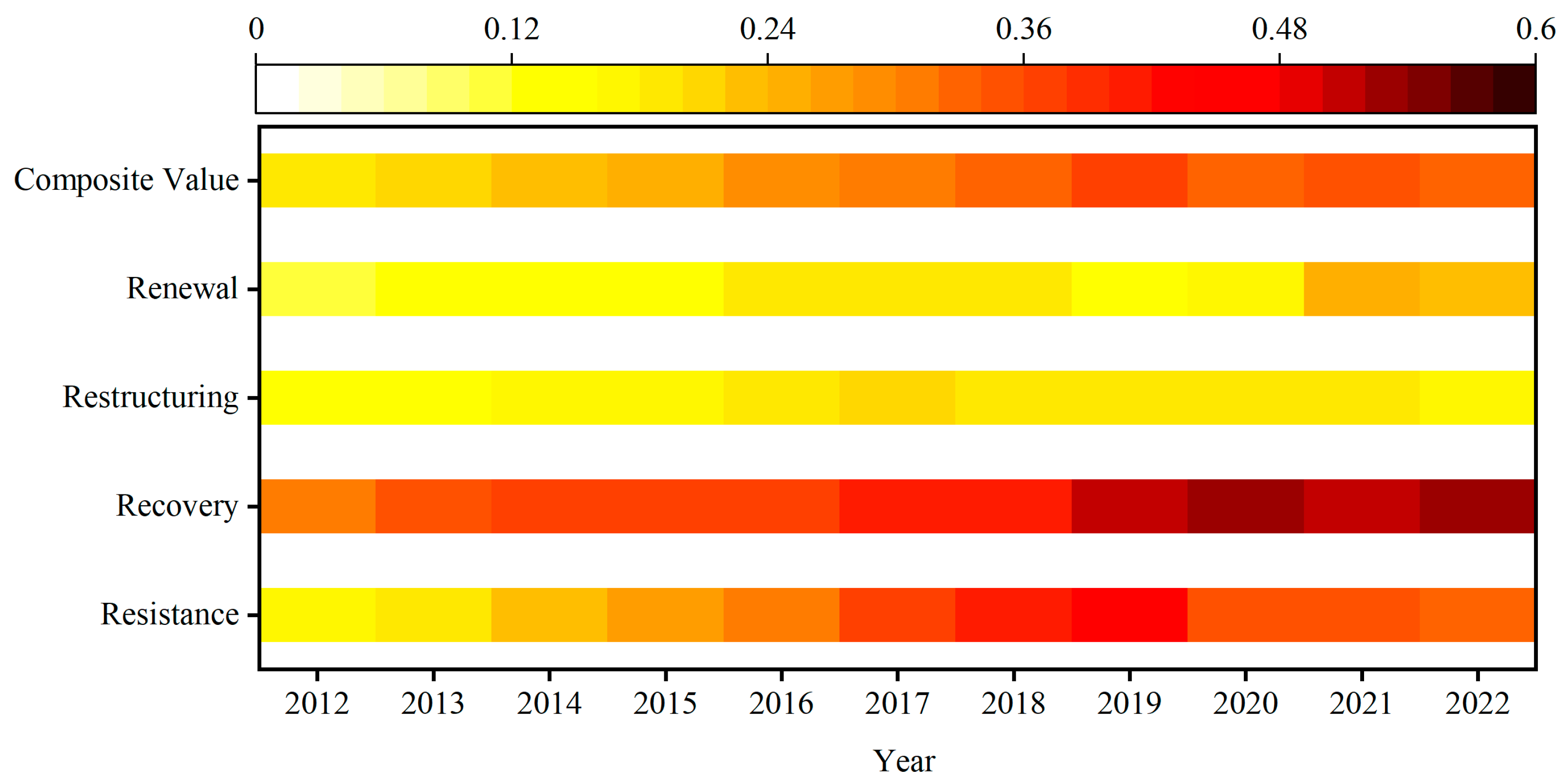 The “Resistance-dominated” path refers to addressing external shocks and internal pressures faced by the tourism economy by enhancing resilience. This model includes Pathways Config. 1, Config. 2, and Config. 6, all of which rely on strong resilience as a core condition. A typical example of Config. 1 is Henan Province in 2012. The provincial government launched and implemented a series of measures, including the “Cultural Henan” tourism brand enhancement project and the optimization of tourism infrastructure, significantly increasing tourists’ interest and participation in tourism, fully demonstrating the positive role of the resistance-dominated path. Config. 6 is exemplified by Shaanxi Province in 2018, which proposed and implemented policies such as upgrading the cultural and tourism welfare electronic card and expanding cultural and tourism consumption credit services. These measures enhanced tourists’ willingness and ability to consume, thereby mitigating the negative impacts of market fluctuations to some extent, demonstrating the effectiveness of resistance-dominated pathways in maintaining the stability of the tourism economy.
