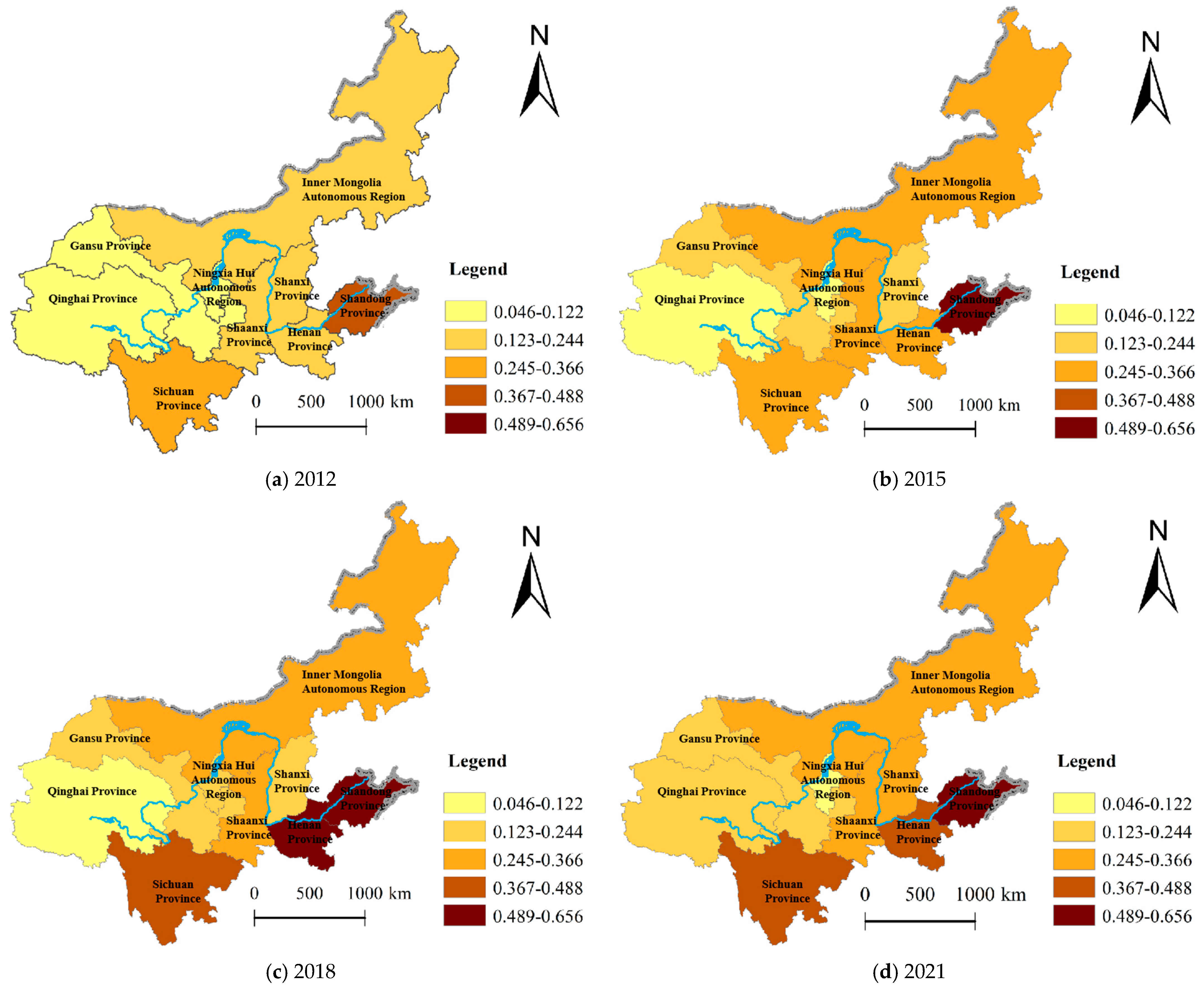 Table 6, nine limiting configurations—hereafter “constraint pathways”—are identified for the nine-province Yellow River corridor. Both individual- and overall-solution consistencies exceed 0.80, attesting to the robustness of the results. These pathways can be synthesised into three archetypes.