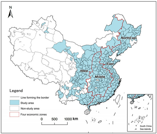 This study takes cities as the research unit and selects the administrative scope of cities in 2019 for data organization. Given differences in statistical systems, data dissemination channels, and meteorological observation networks between Hong Kong, Macau, and Taiwan regions and mainland China, we have not included these areas in the current analysis to maintain consistency in model calculations and result comparisons. Excluding areas with missing data, a total of 278 Chinese cities were selected as research objects for the study (Figure 2), with a time span of 2010, 2015, and 2020.