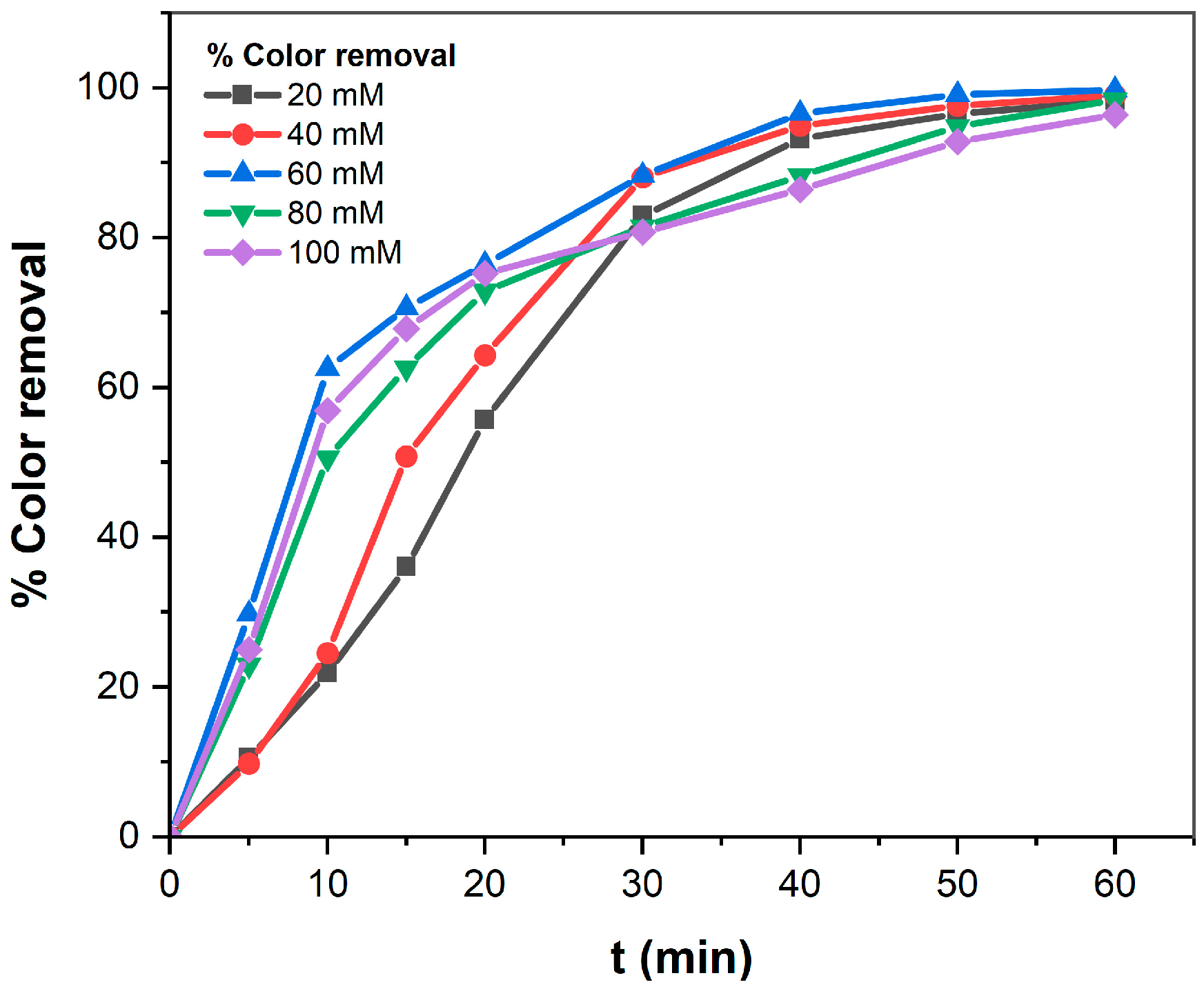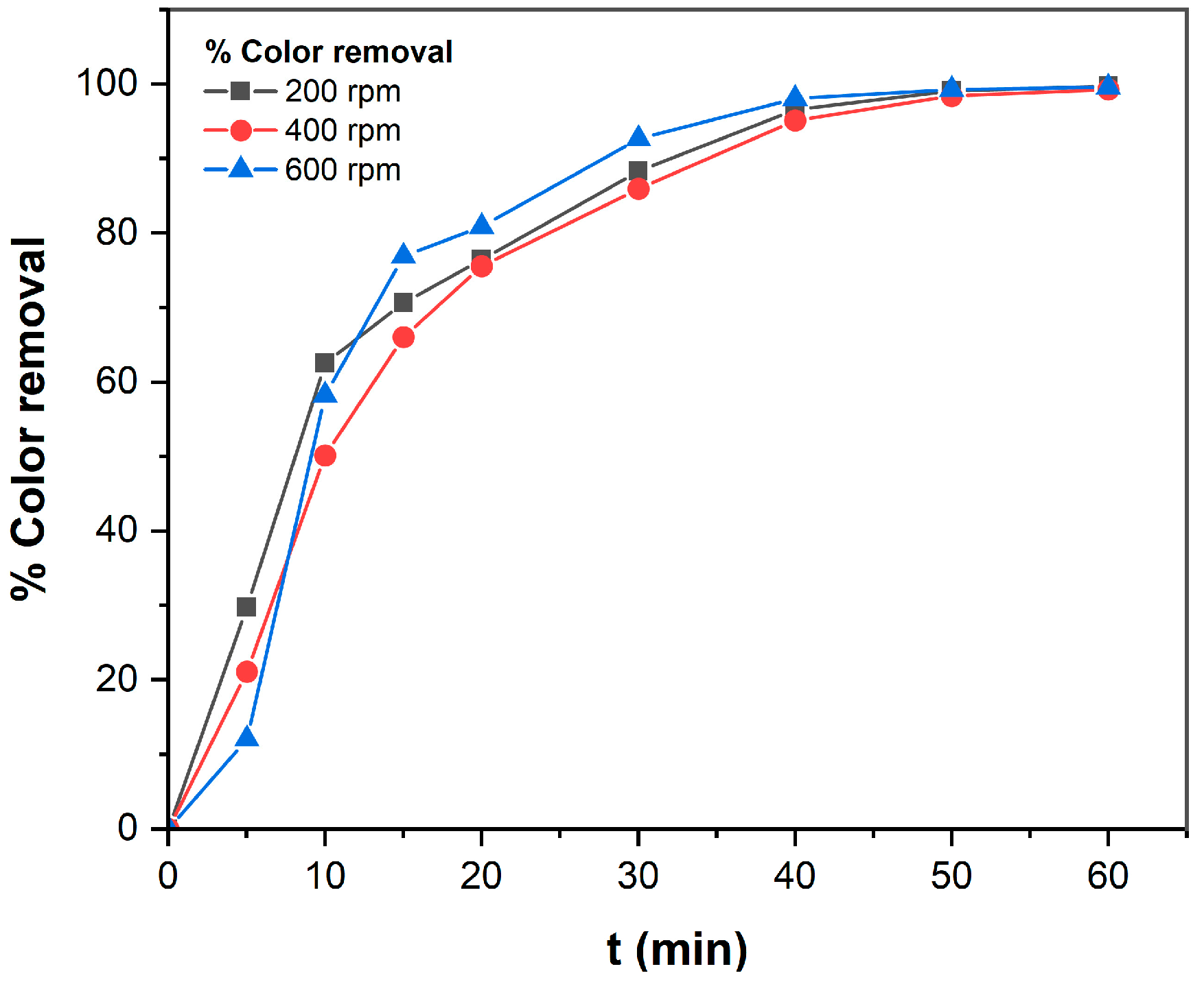 3.1.4. Effect of Initial Dye Concentration on TB Removal