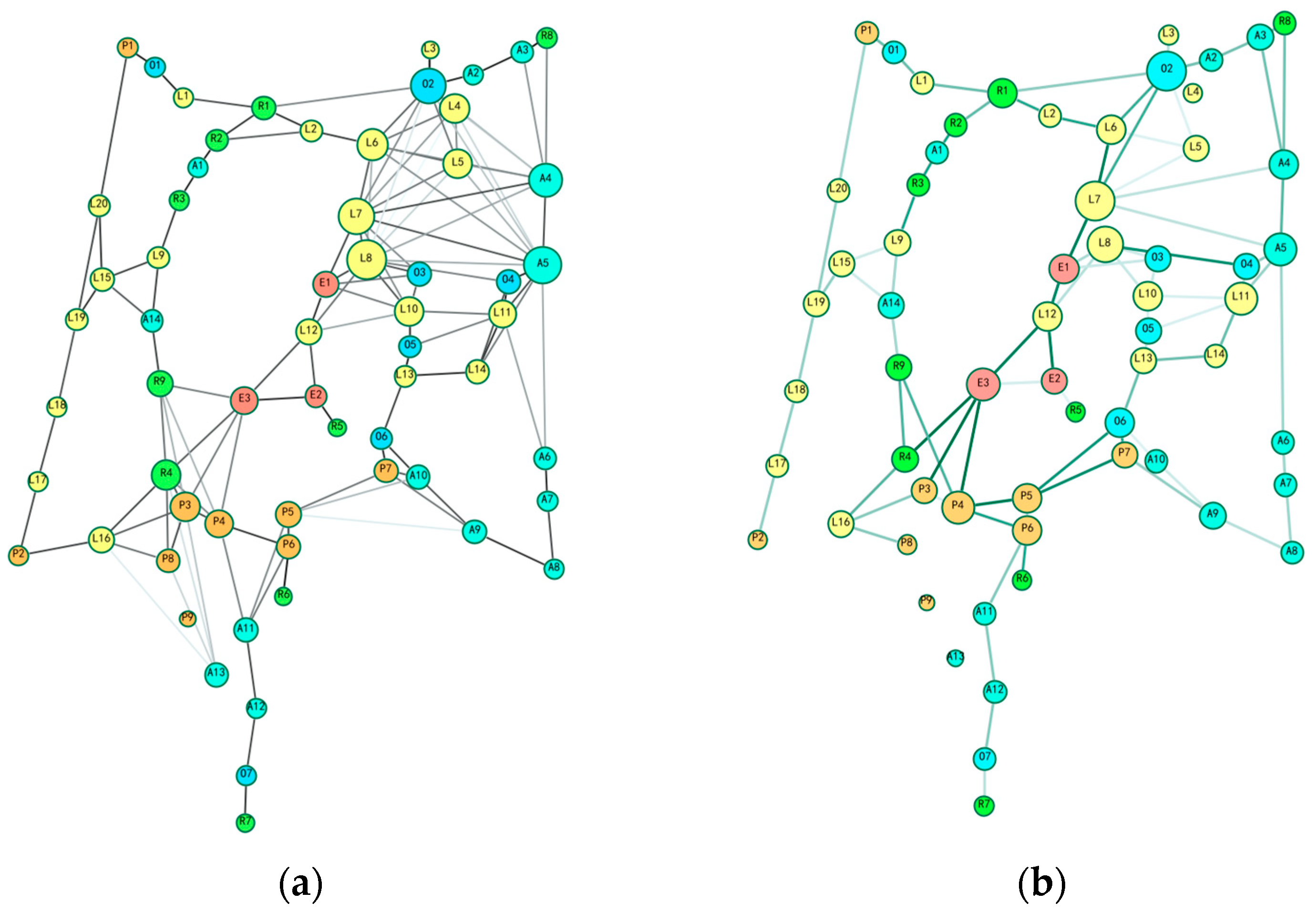 4.2.2. Comparison of Degree Centrality in the Town Network
