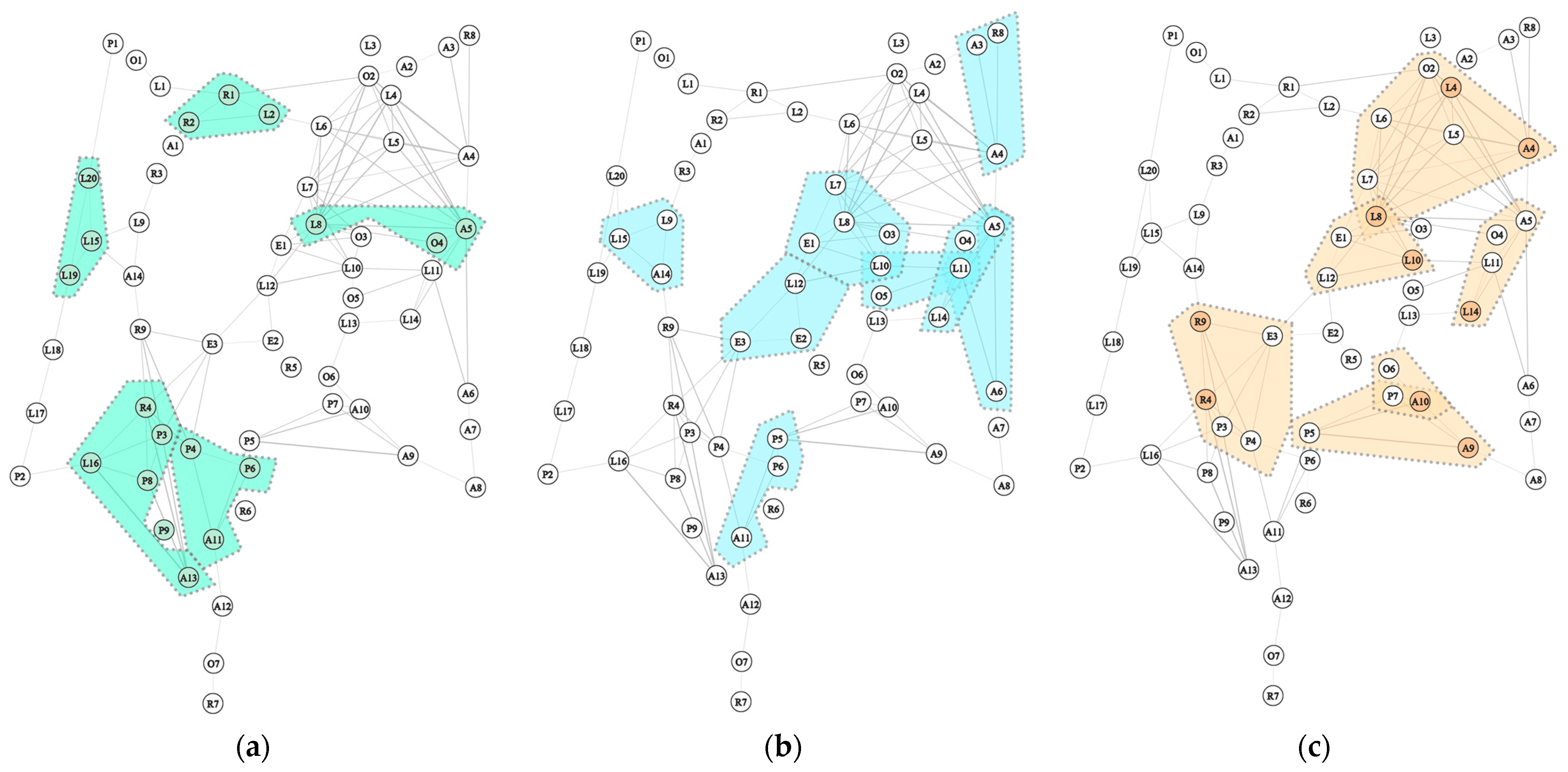 - Borgatti, S. The network paradigm in organizational research: A review and typology. J. Manag. 2003, 29, 991–1013. [Google Scholar] [PubMed]