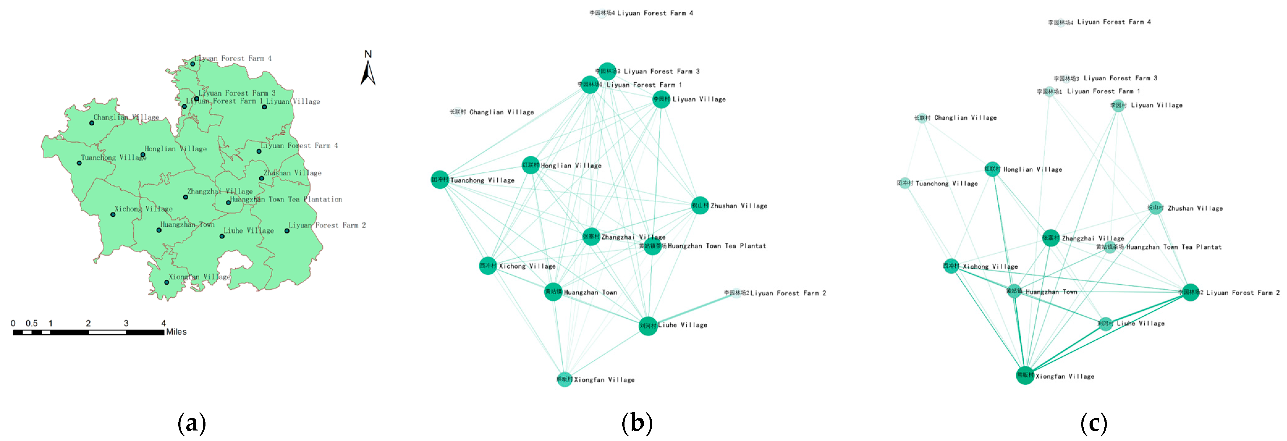2.2. Application of Social Network Analysis at the “Township” Scale in Rural Construction Evaluation