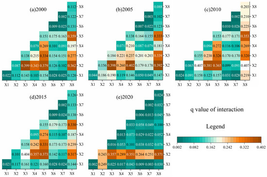 The factor detector was employed to assess the extent of each factor’s influence on the LERI. By determining the q-value for factors, we determined the force of each factor from 2000 to 2020 (
