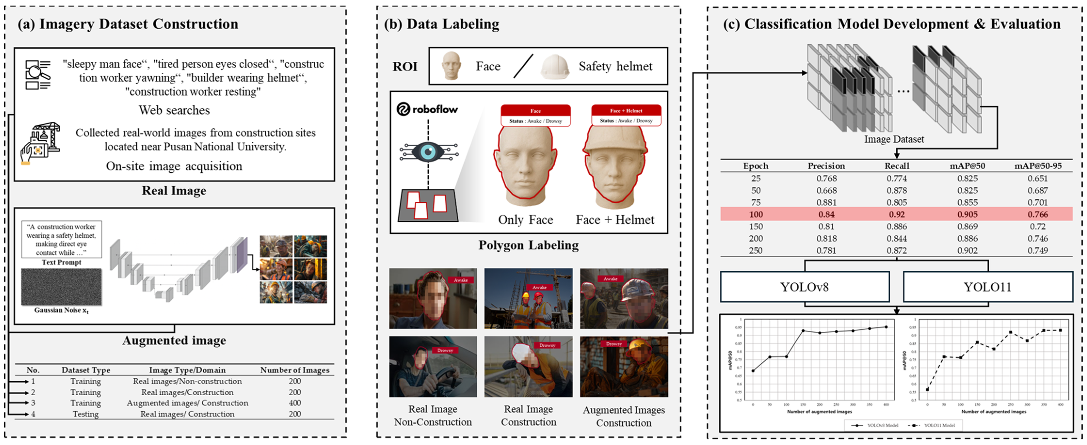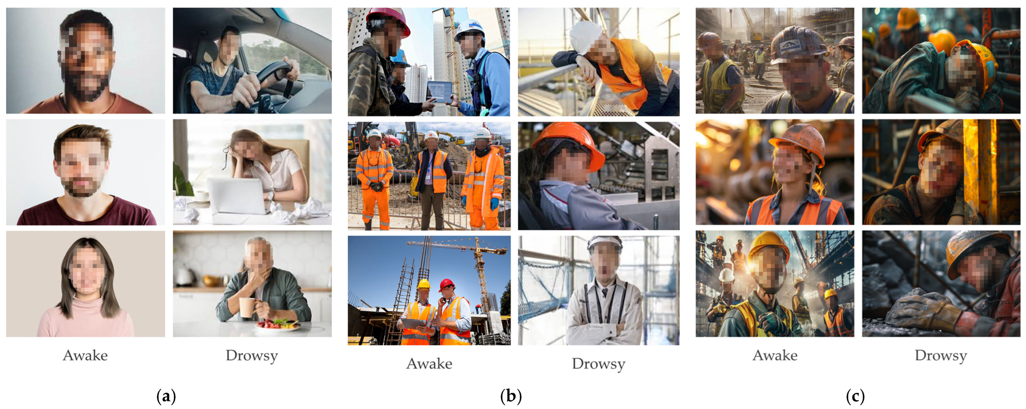 APA StyleJung, D., Lee, Y., Jeong, K., Lee, J., Kim, J., Park, H., & Jeon, J. (2025). Improvement of Construction Workers’ Drowsiness Detection and Classification via Text-to-Image Augmentation and Computer Vision. Sustainability, 17(20), 9158. https://doi.org/10.3390/su17209158