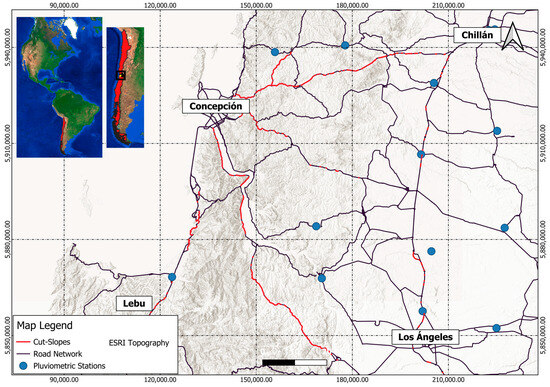 To evaluate road network vulnerability against the rainfall simulated in Section 3.2, a georeferenced and attributed inventory of the regional road network’s main routes was compiled to identify cut-slopes for the study.
