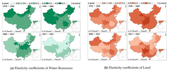 Changes in the Elastic Coefficients of Water Resources and Land Factors in the Primary Industry by Study Region.
