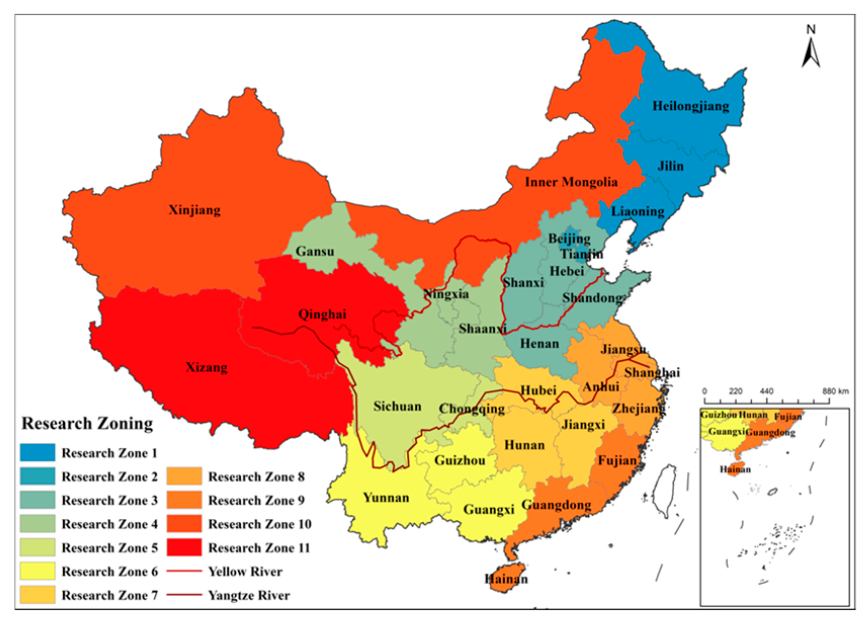 Potential Development Zone | Research zone 1, Research zone 10, Research zone 4 | Major reserve arable land areas in China; limited water resources, which constrain agricultural development |