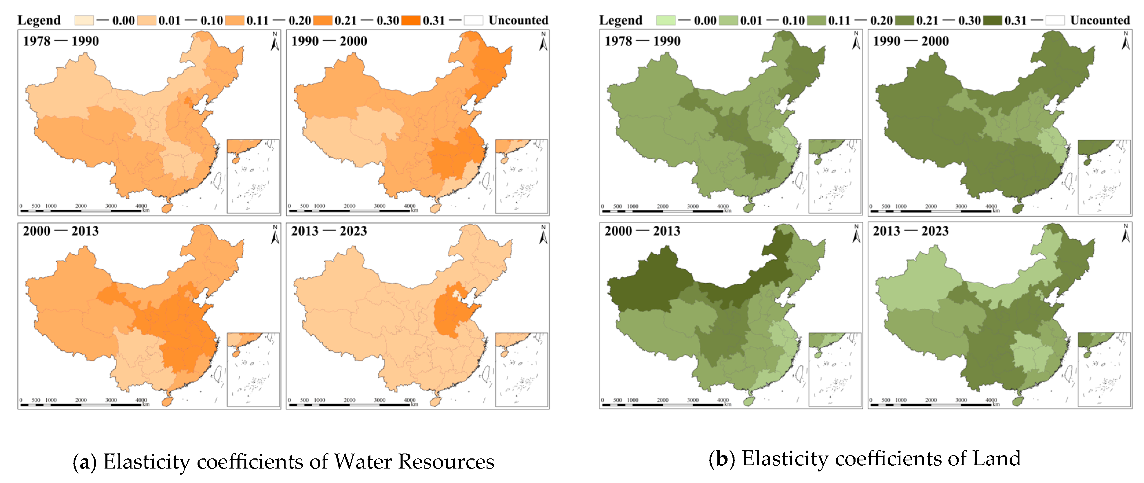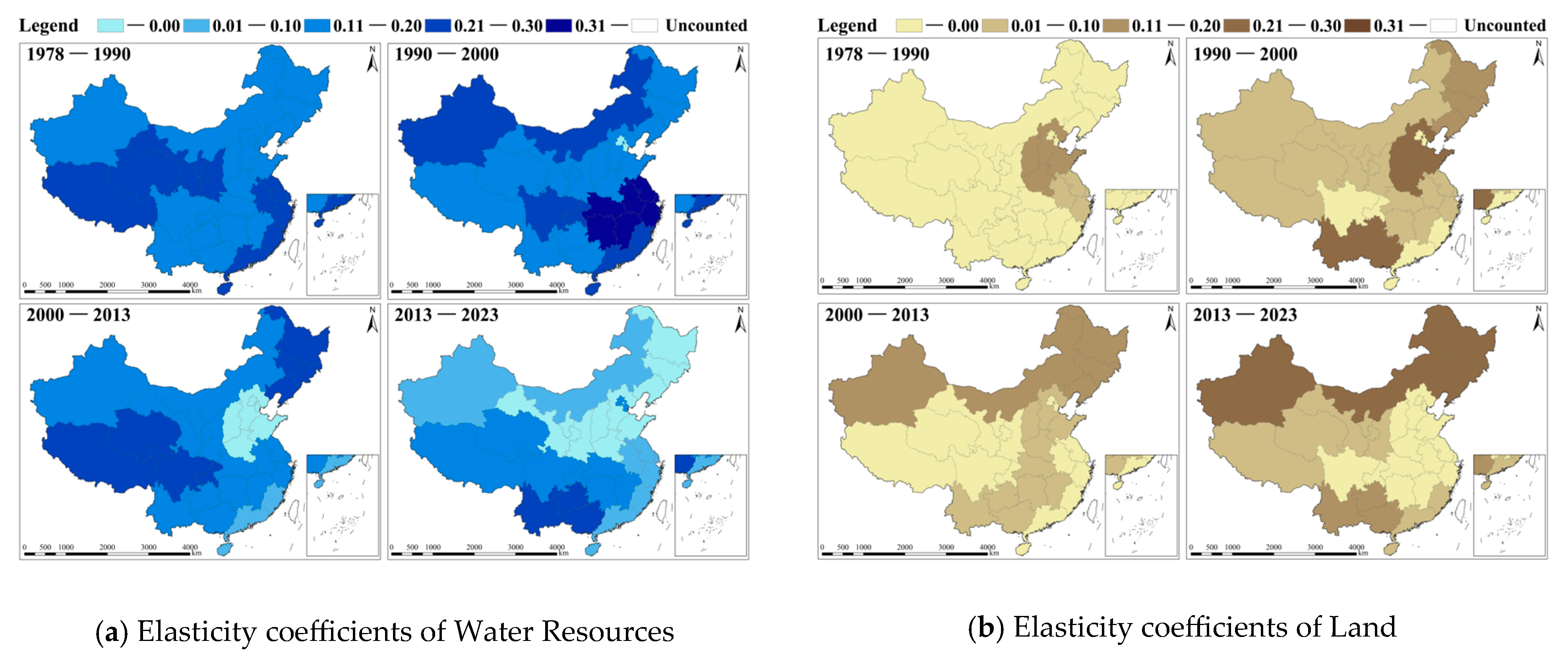 3.4.2. Changes in the Contribution of Water and Land Resources to the Secondary Industry