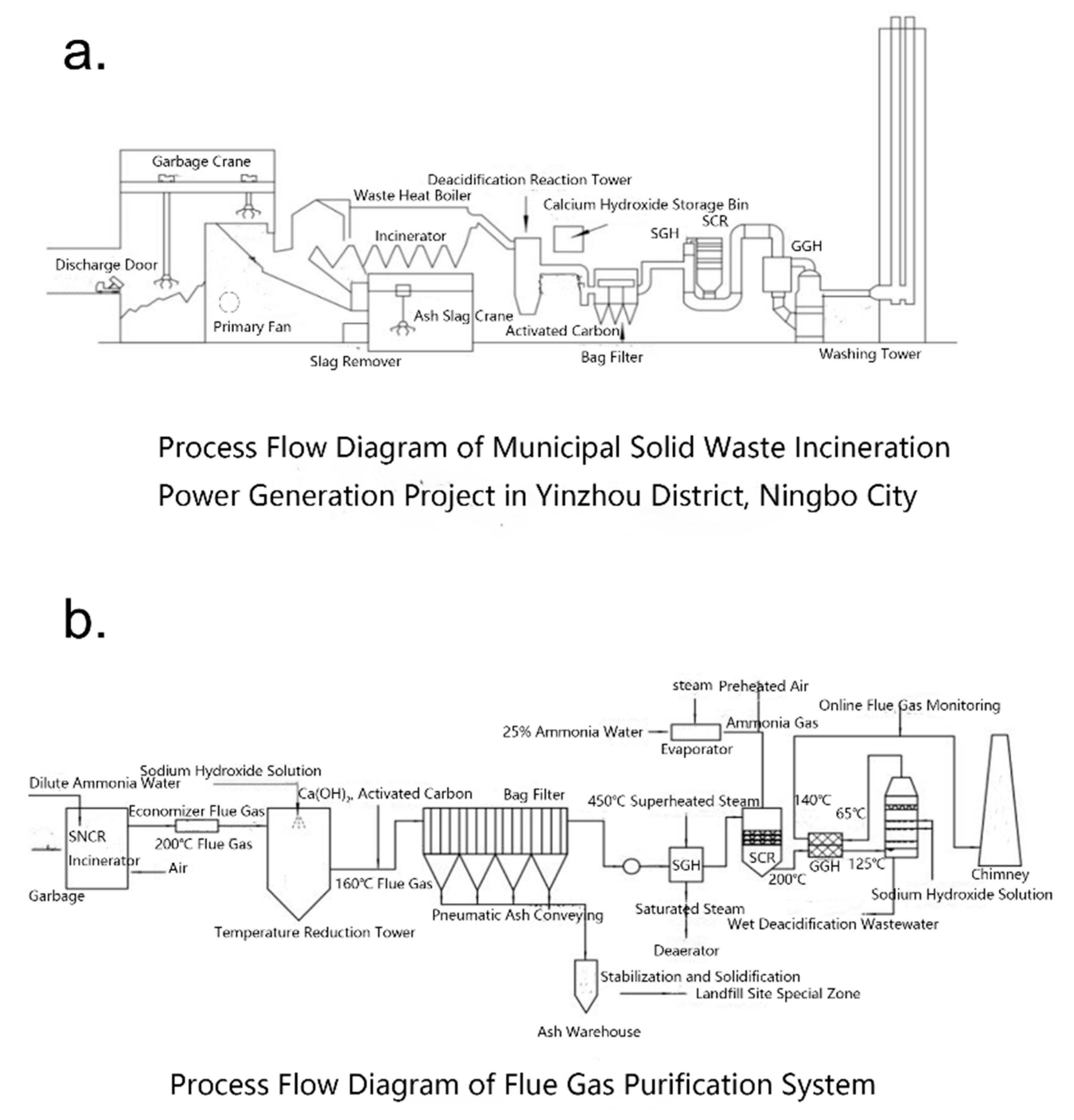 Urban waste management is fundamental to the operation of cities and an important part of the governance of pollution control and greenhouse gas reduction. Compared to traditional landfill methods, waste incineration for power generation effectively reduces waste volume, extends landfill life and recovers energy through waste heat, partially replacing fossil energy and achieving the “win–win” effects of carbon reduction and pollution control. Haishu District in Ningbo City has actively promoted the resourceful and environmentally friendly treatment of municipal solid waste, establishing a local waste incineration treatment center with a matching power generation system. This makes it an important practical field for reducing urban pollution and carbon emissions. According to statistics, Ningbo City’s municipal solid waste incineration power generation project (this project) has a design capacity of 821,250 tons of waste per year, with the main incineration power plant located in Yinzhou. The plant uses advanced grate furnace incineration technology and flue gas purification systems with strong carbon reduction and pollutant control capabilities (