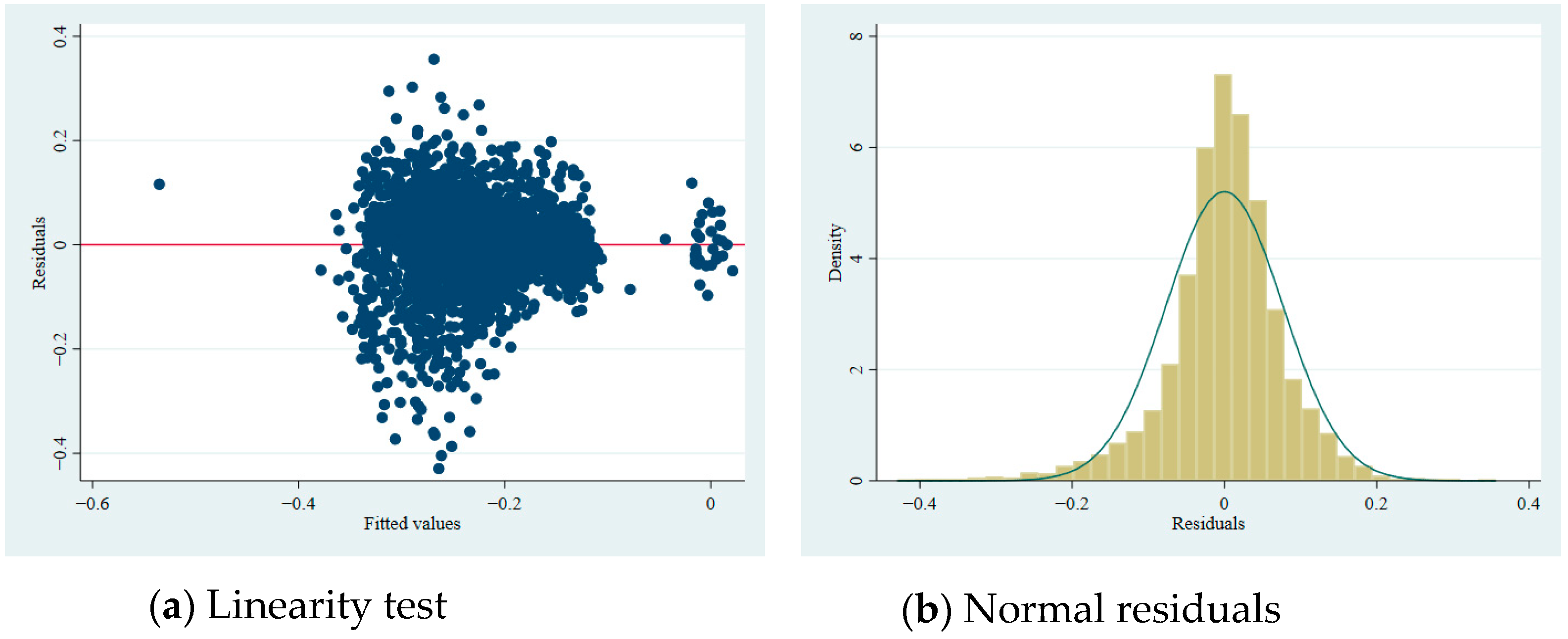 ) in the previous year as the target level and calculates the volatility of a firm’s ROA deviation from the target level over the current year and the subsequent two years. This method emphasizes downside fluctuations relative to the benchmark, thereby capturing the firm’s vulnerability to adverse shocks. The specific calculation method is presented in Equation (1). A higher volatility indicates lower organizational stability. Operating efficiency, defined as the ratio of operating income to total assets. The data for these indicators are obtained from the CSAMR database. These indicators, grounded in firms’ actual operating activities, complement market-based measures and help alleviate concerns regarding the absence of operational data.