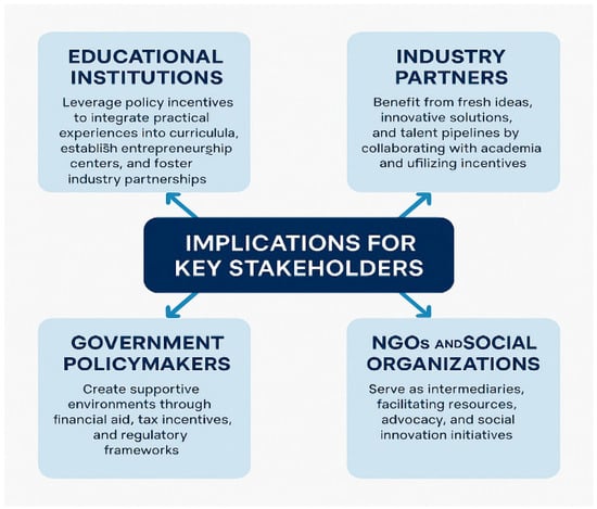 The findings emphasize the importance of developing integrated policy frameworks that offer direct support while enhancing engagement, curricula, and skill development. Policymakers should create incentives that promote experiential learning and collaboration with the industry. Educators need to incorporate practical, flexible, and industry-aligned content into their curricula. Industry partners should play an active role in providing training and mentorship. Together, these elements foster an entrepreneurial mindset and adaptability, which are essential for success in today’s competitive and rapidly changing environment.
