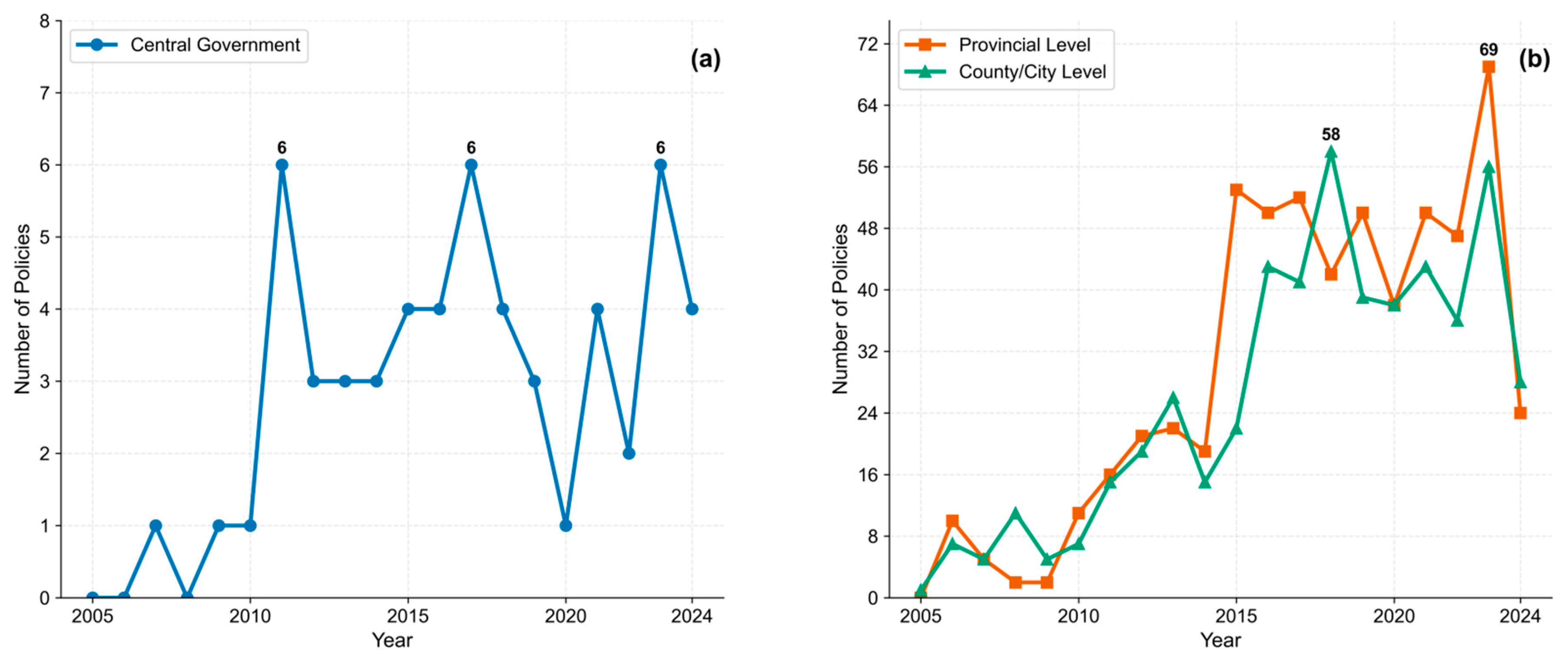 3.1.1. Temporal Characteristics of Policy Issuance and Inter-Level Interactions