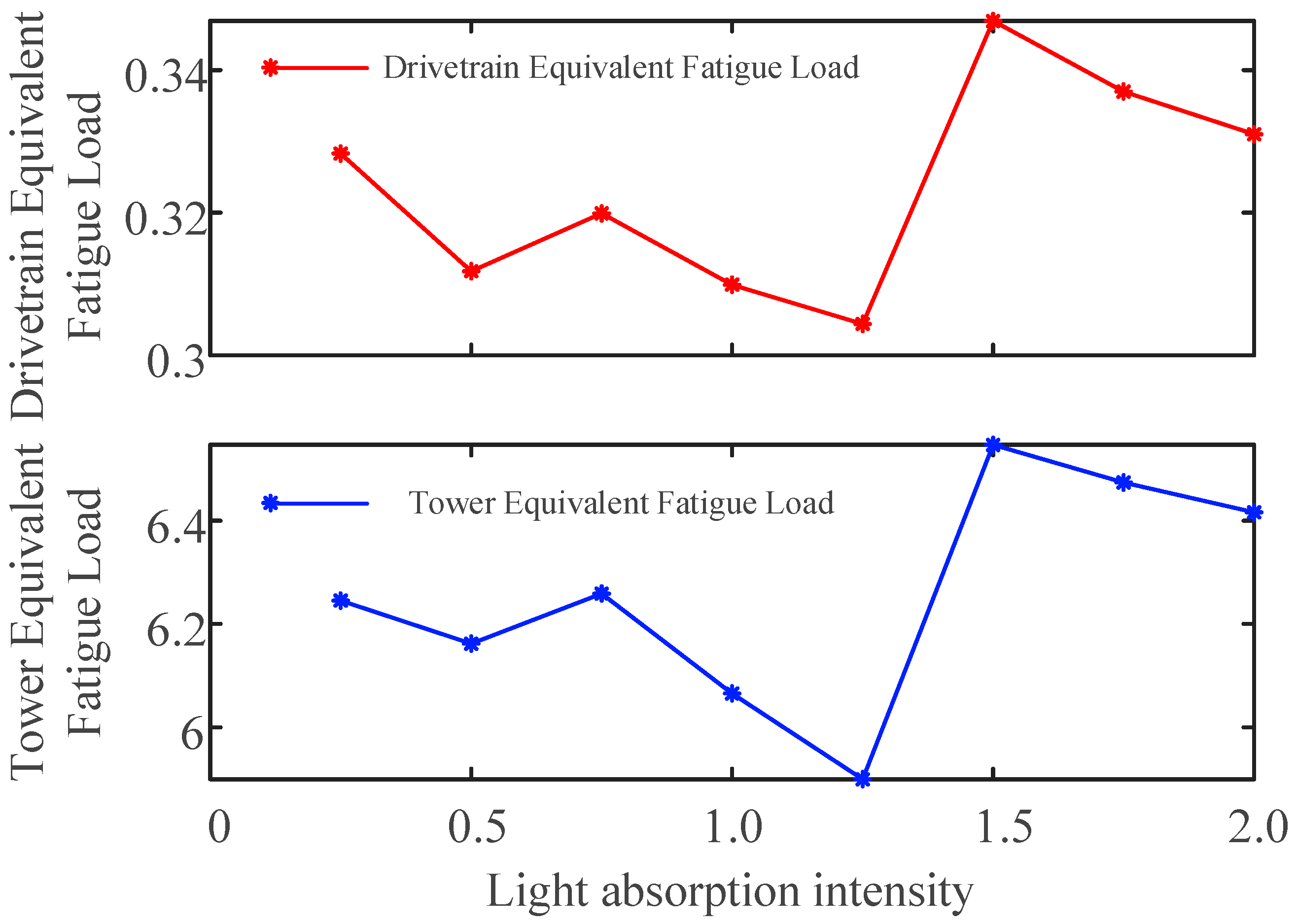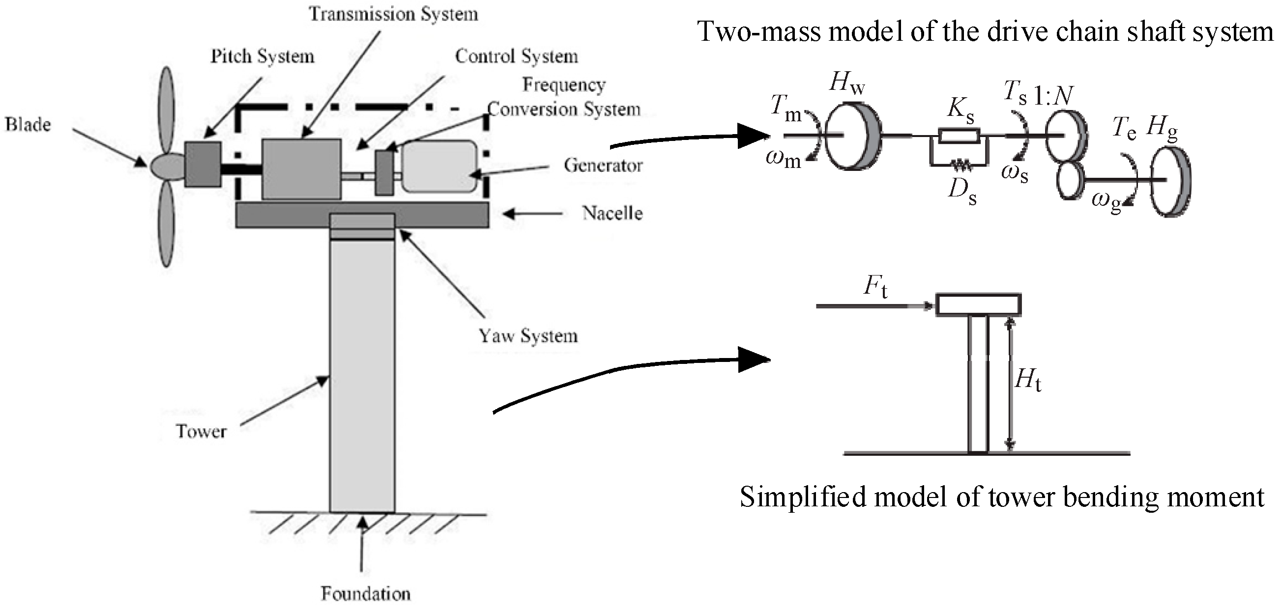 - The torque variation in the turbine drivetrain system and the bending moment fluctuation in the fore-and-aft directions of the tower are the primary factors contributing to the fatigue load of wind turbines. By constructing a fatigue load expression, the quantitative relationship between the fatigue load and the fluctuation of the turbine’s active power output can be clearly established. This expression not only reveals the intrinsic mechanism of fatigue load formation but also provides a theoretical foundation and basis for optimizing the fatigue load suppression during active power control in wind turbines.