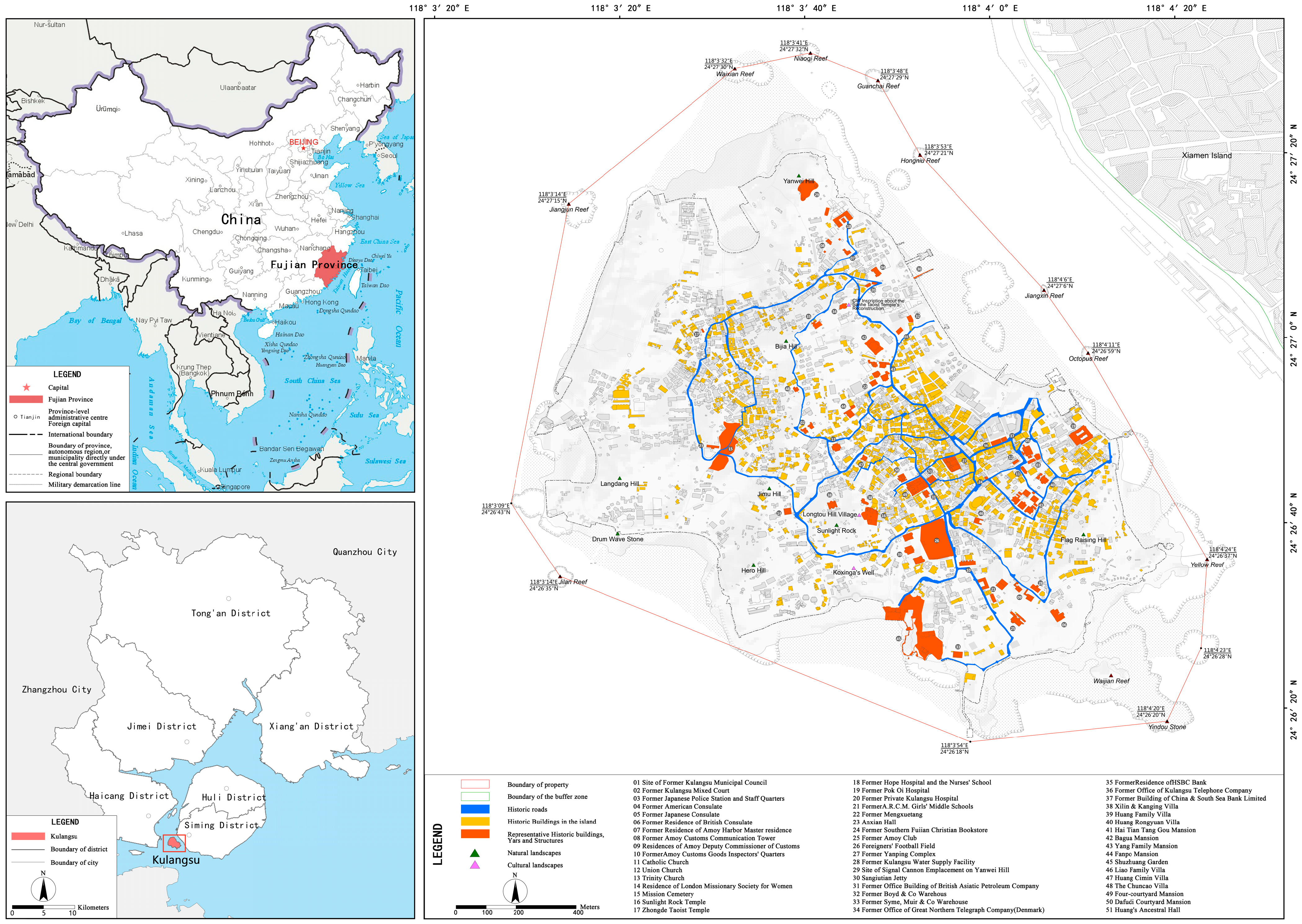 - Li, Y.; Liang, J.; Huang, J.; Shen, H.; Li, X.; Law, A. Evaluating tourist perceptions of architectural heritage values at a World Heritage Site in South-East China: The case of Kulangsu Island. J. Hosp. Tour. Manag. 2024, 60, 127–140. [Google Scholar] [CrossRef]