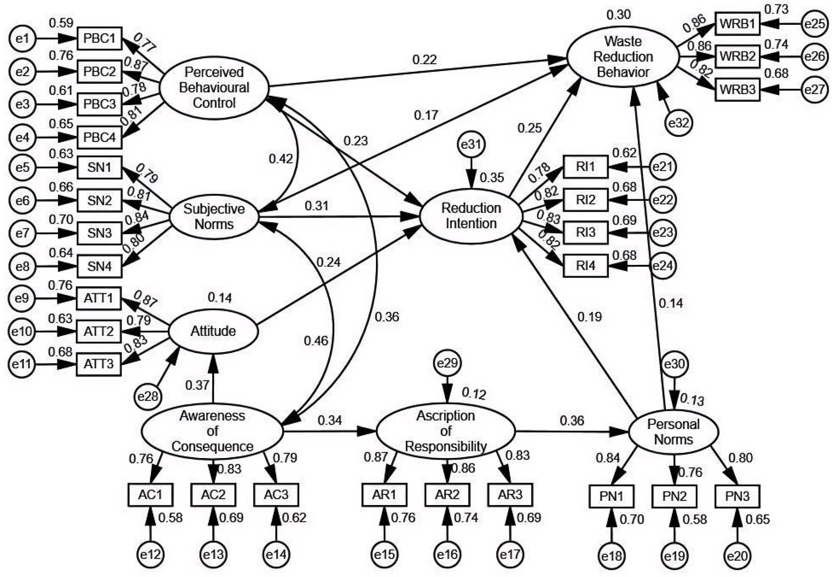 The results show that perceived behavioral control had a large beneficial impact on CWR behavior, which is consistent with the findings of Li et al. (2022) [