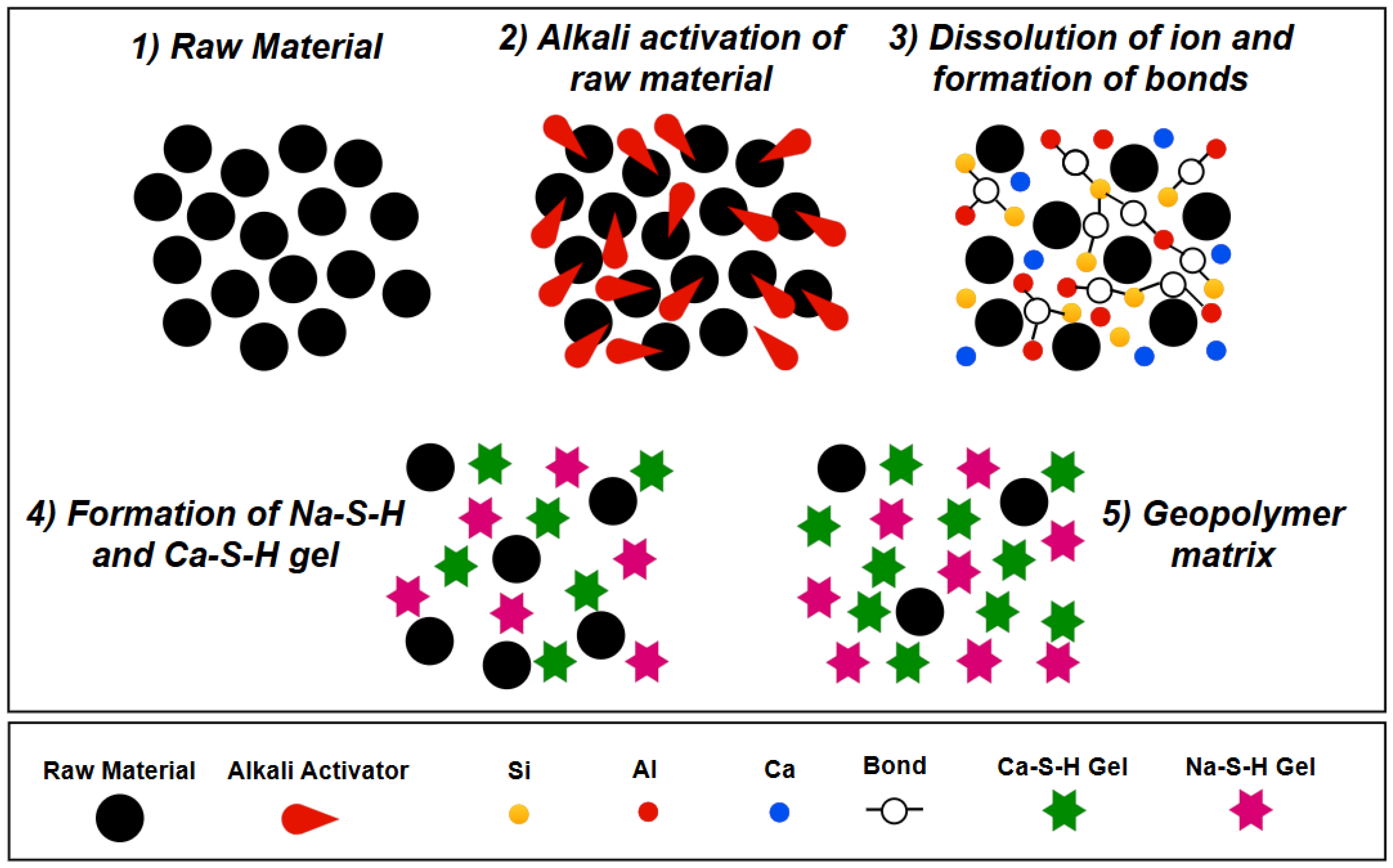 - Khale, D.; Chaudhary, R. Mechanism of geopolymerization and factors influencing its development: A review. J. Mater. Sci. 2007, 42, 729–746. [Google Scholar] [CrossRef]