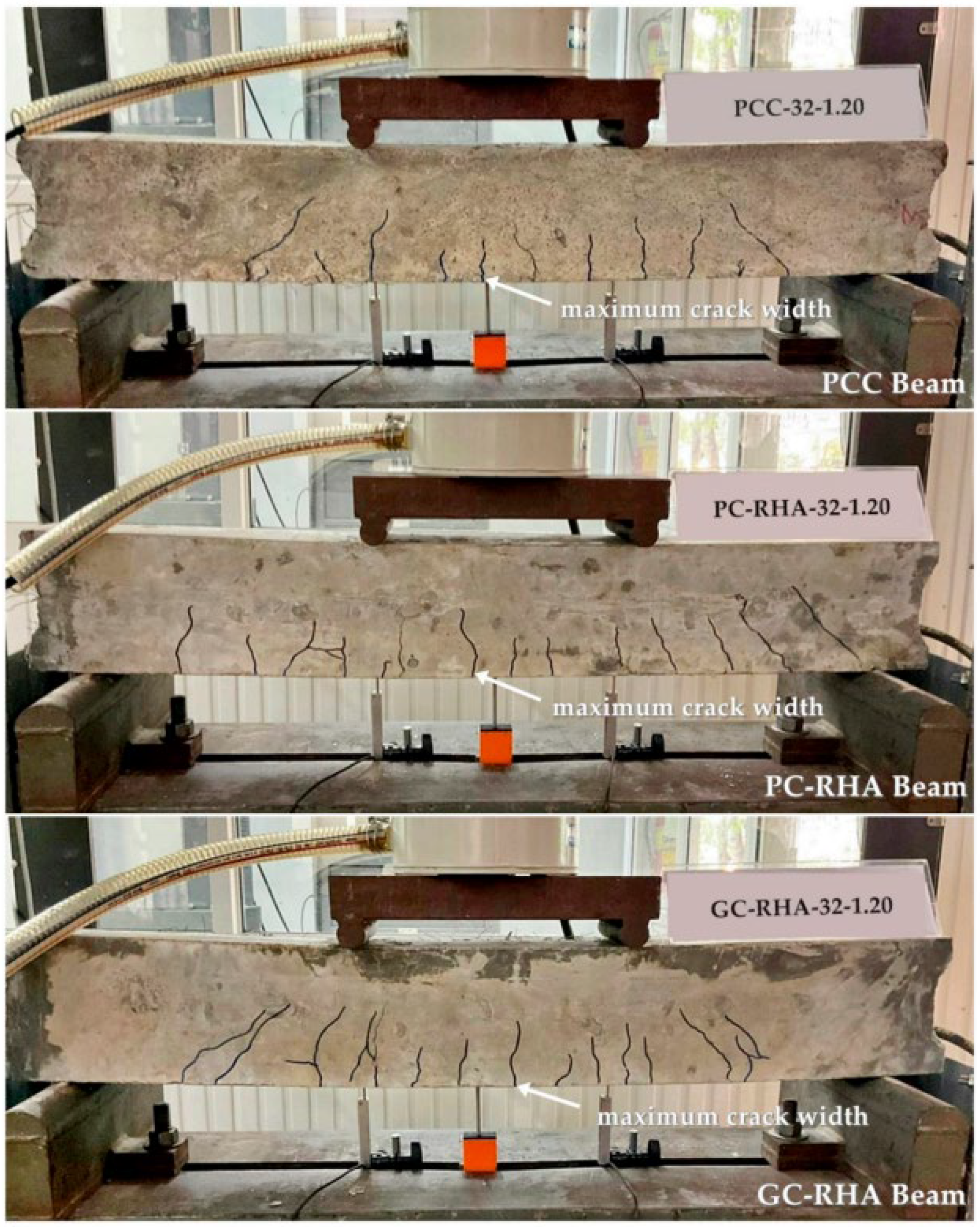 - Özbayrak, A.; Kucukgoncu, H.; Aslanbay, H.H.; Aslanbay, Y.G. Stress and damage distribution analysis of steel reinforced geopolymer concrete beams: Finite element method and experimental comparison under varying design parameters. J. Build. Eng. 2025, 104, 112229. [Google Scholar] [CrossRef]
