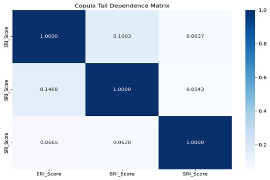 19]. The independence of SRI from both ERI and BRI illustrates the flexibility of copulas in capturing asymmetric and conditional relationships [