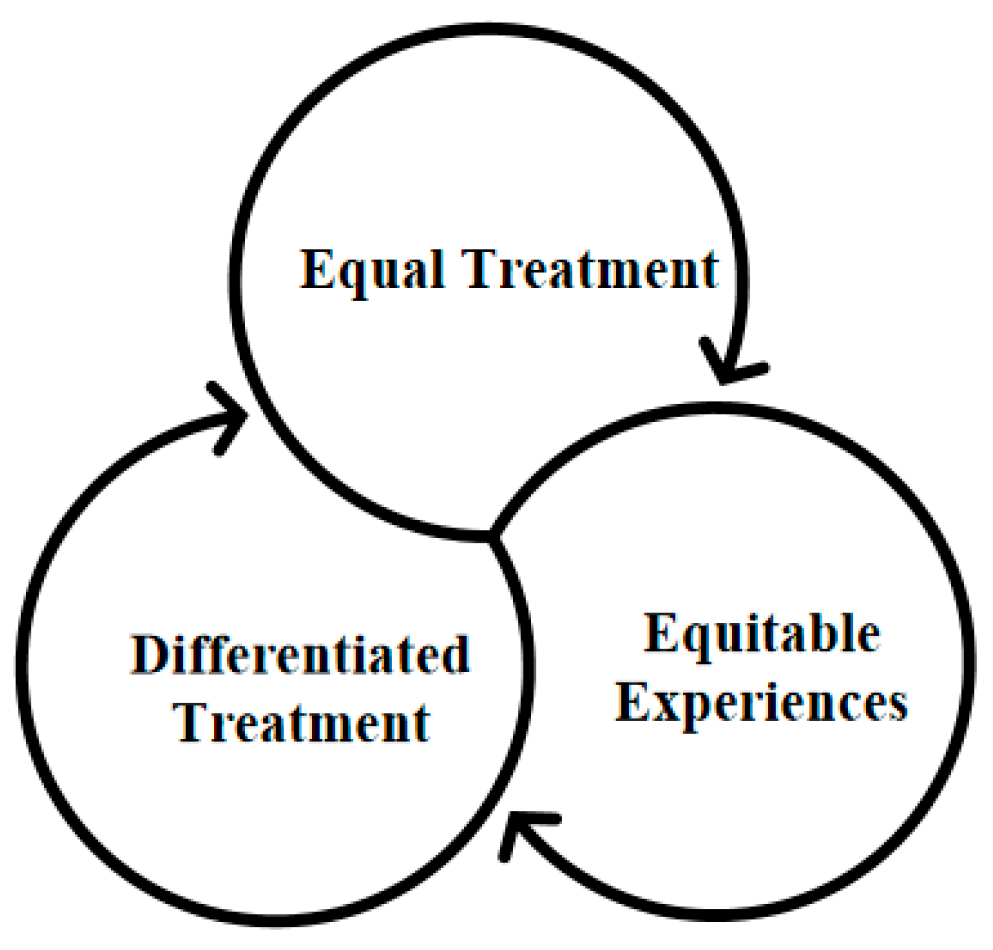 - Equal Treatment: Ensuring uniform access to learning identities, rights, and resources (Lei, 2018) [25]. However, contemporary research cautions that such procedural uniformity, while foundational, can inadvertently sustain inequities if applied rigidly without considering students’ diverse starting points (Kwok et al., 2025) [26].