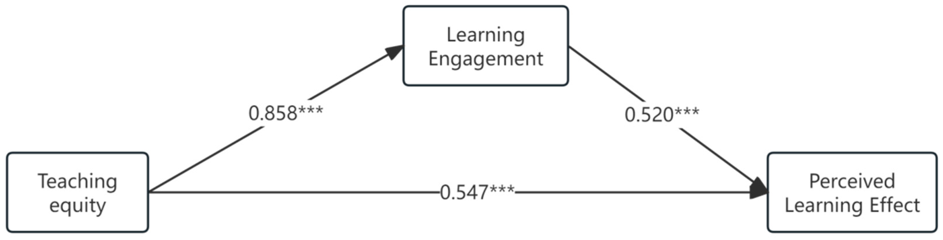 - Which dimensions of learning engagement mediate the relationship between teaching equity and perceived learning effect?