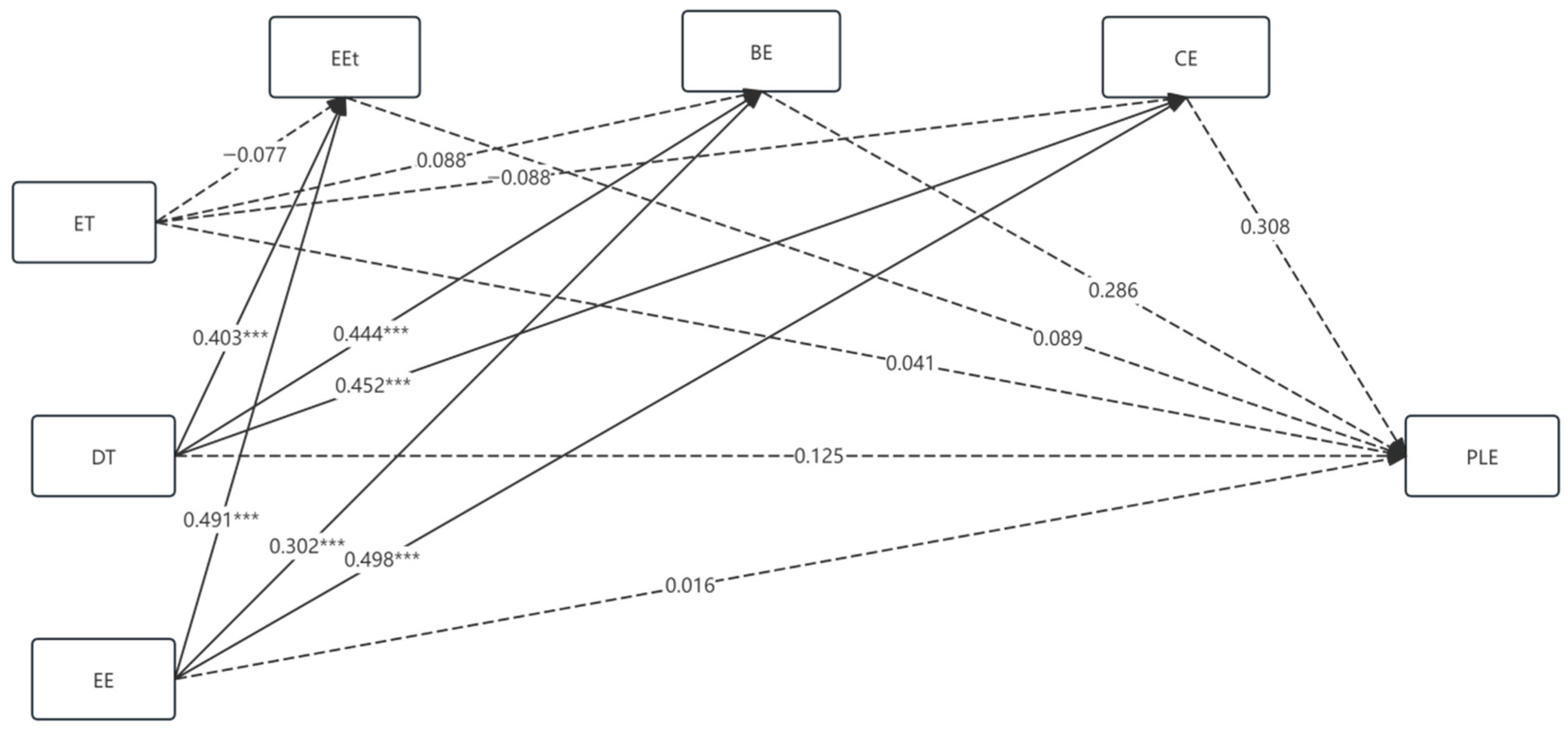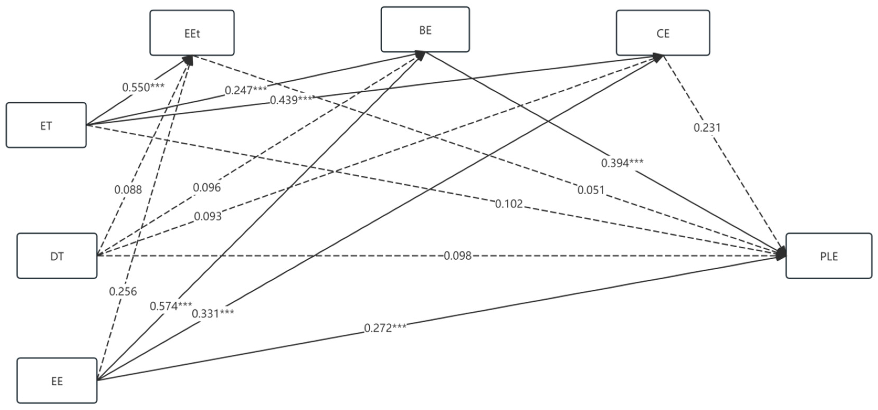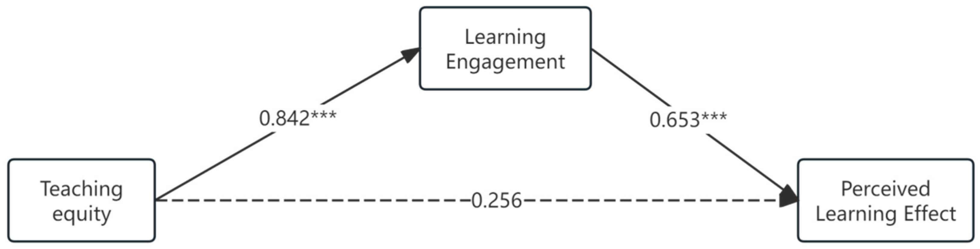 4.2. Teaching Equity in the Dual-Teacher Classroom Has a Significant Positive Effect on Perceived Learning Effect, with Equitable Experiences as the Strongest Sub-Dimension