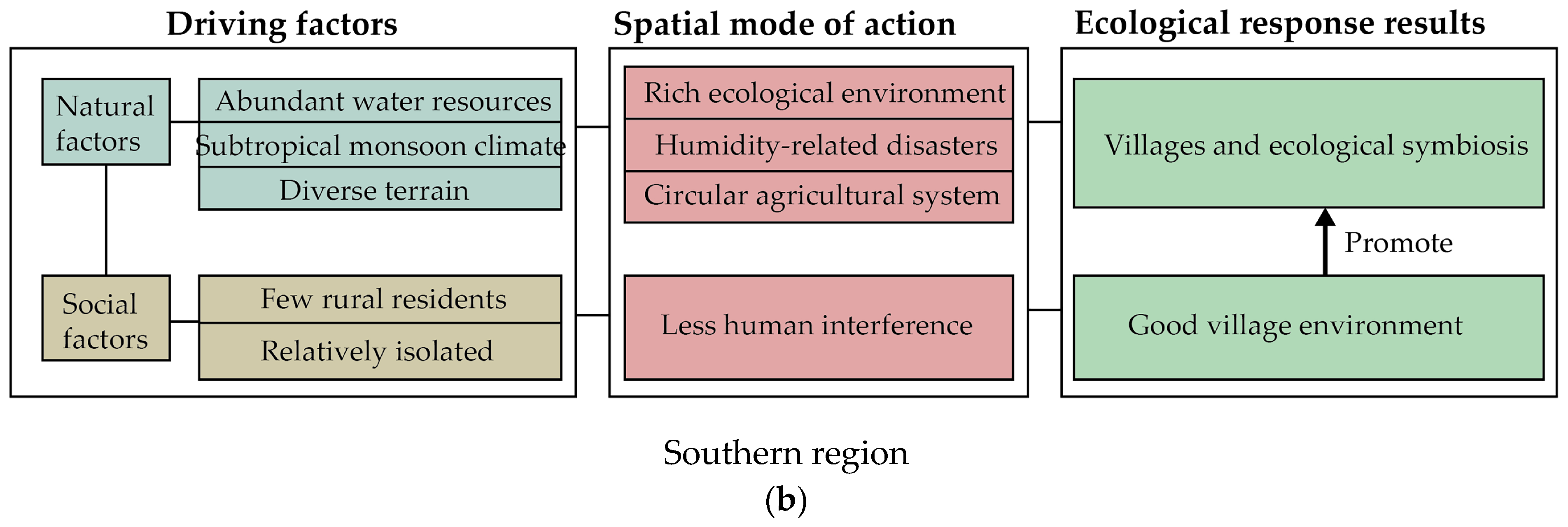 37]. There are significant climatic, topographical, and human differences between northern and southern China: villages in the northern cold region near the suburbs face strong human disturbance.; warmer southern villages often benefit from terrain barriers and dense vegetation that enhance their stability. The driving mechanisms of village ecological sensitivity remain inadequately analysed, and this regional differentiation limits the universality of the policies. Future work will require expanded study areas and advanced multi-factor models.