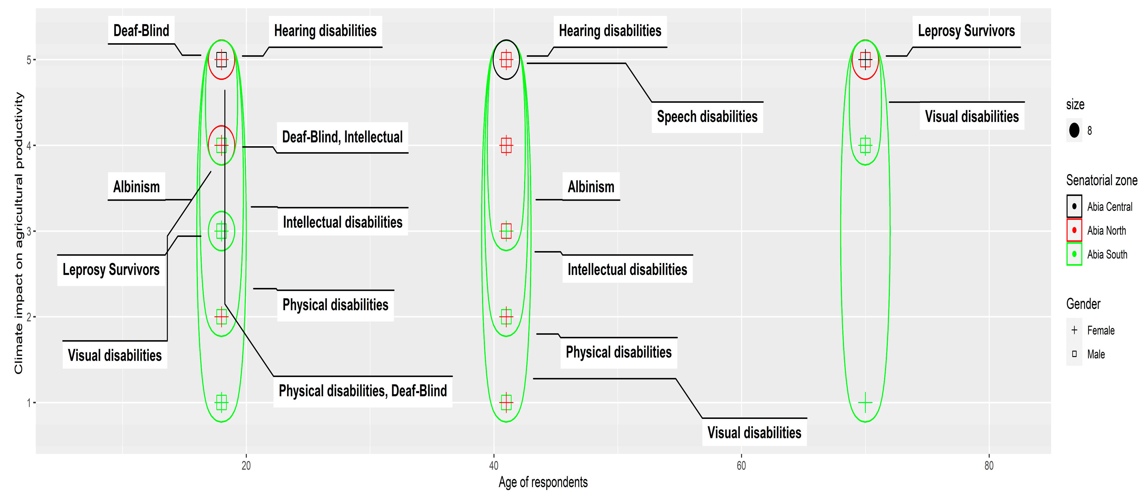 15]. These measures are particularly vital in Abia North. Persons with disabilities facing challenges achieving agricultural productivity may benefit from adaptive agricultural tools and practices and access to a broader range of agricultural-related livelihood, such as food processing.
