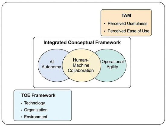 In order to address these gaps, this work will provide a proposed integrated conceptual framework, a synthesis of the TOE, the TAM and the IS Success Models with sustainability as a fundamental dimension. The structure was based on the autonomy of AI, interdisciplinary collaboration between humans and robots, and flexibility of operation in order to keep the most crucial environmental, economic, and social sustainability goals in sight. In order to direct this study, the following research questions are posed: