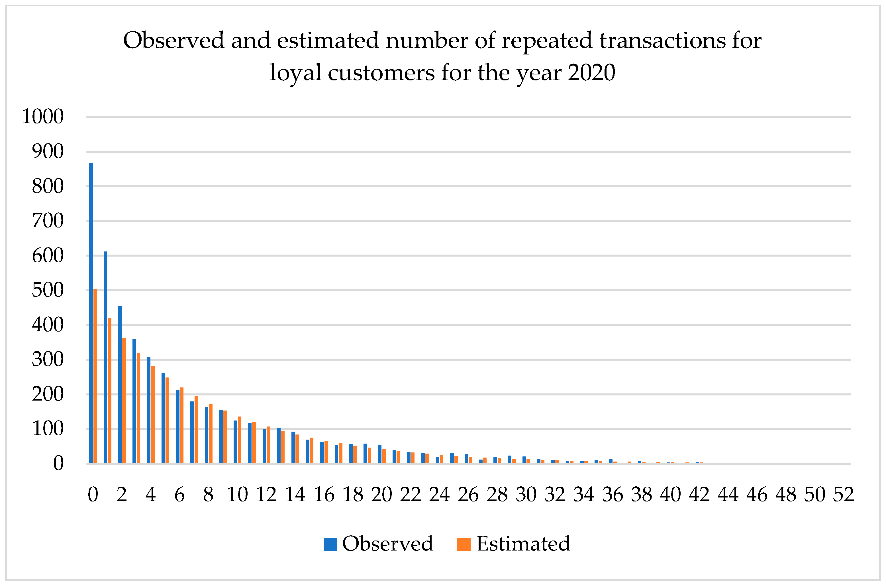 Out of all the transaction data, the customers’ buying frequency will be modeled in the current paper. Buying frequency can be simply defined as the number of transactions a customer completes in a certain period (e.g., in a week, trimester, semester, or a year). One of the first influential papers which modeled the buying frequency of US households for consumer goods is that of Ehrenberg [