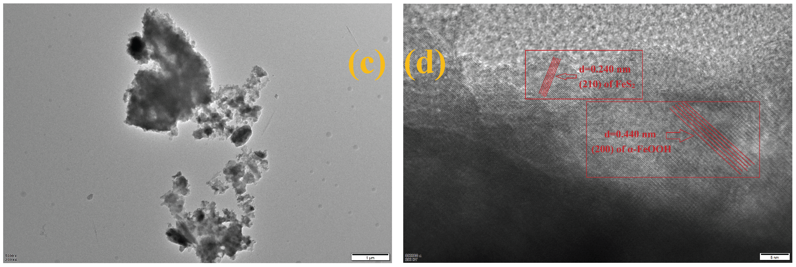 - Guo, Y.; Li, C.; Gong, Z.; Guo, Y.; Wang, X.; Gao, B.; Qin, W.; Wang, G. Photocatalytic decontamination of tetracycline and Cr(VI) by a novel α-FeOOH/FeS2 photocatalyst: One-pot hydrothermal synthesis and Z-scheme reaction mechanism insight. J. Hazard. Mater. 2020, 397, 122580. [Google Scholar] [CrossRef]