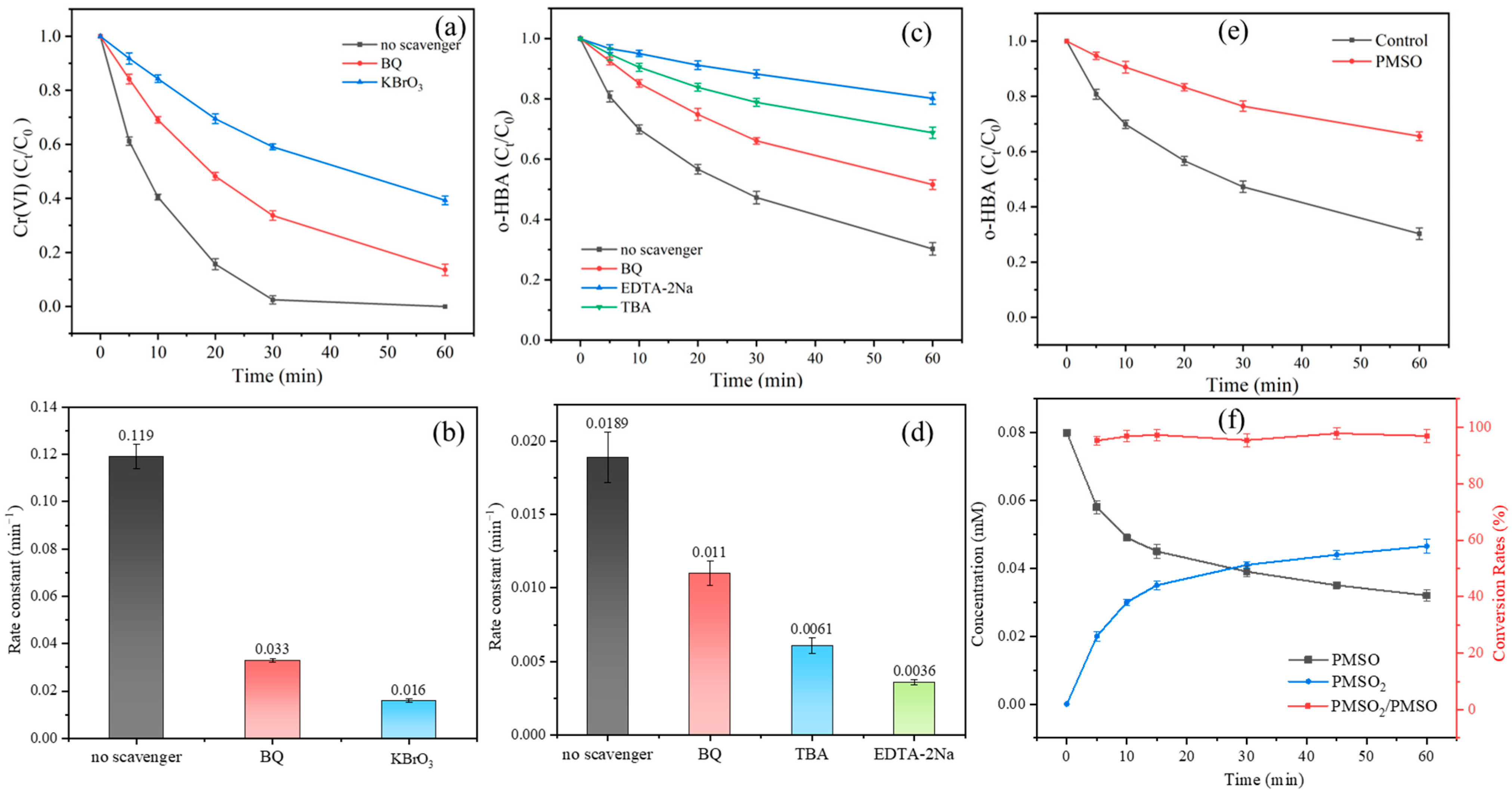 | Quencher | ROS | FeS2/α-FeOOH/C/Cr(VI) + o-HBA/Light | ||