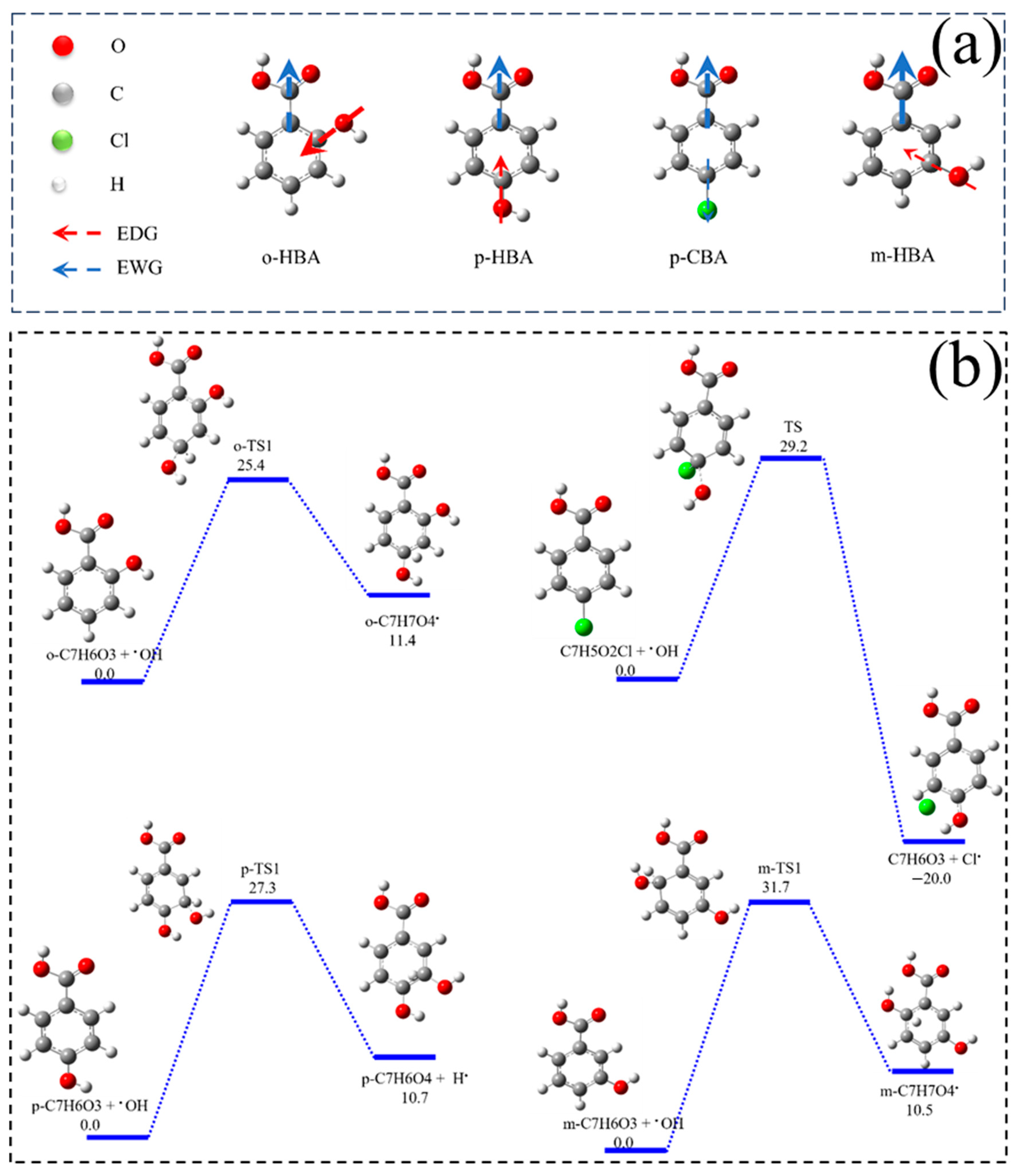 3.3.1. Proposed Degradation Paths for Different Benzoic Acids